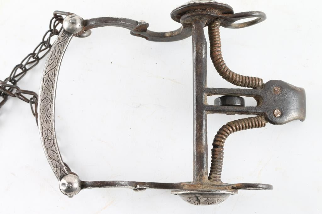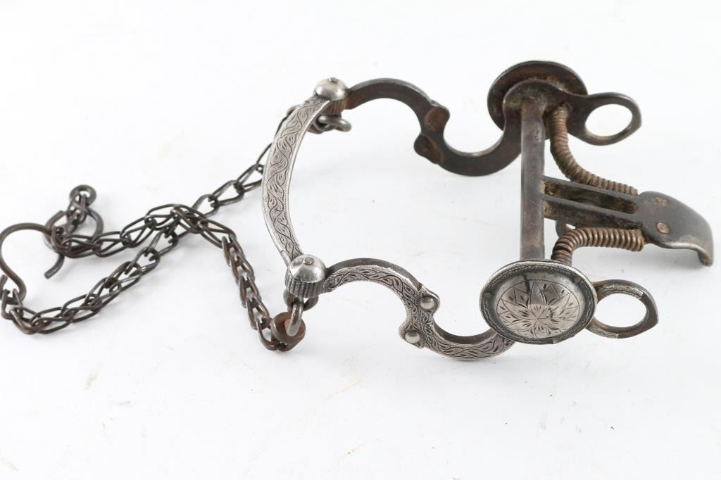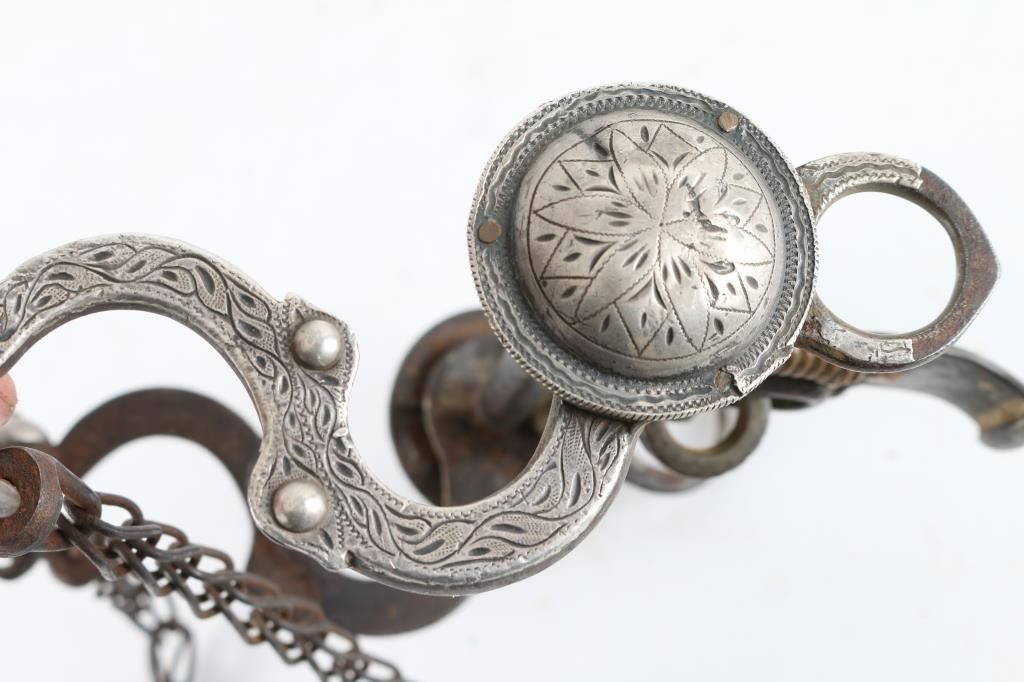 Engraved Silver overlaid design small dents near cheek pieces. Purchased from High Noon years ago.