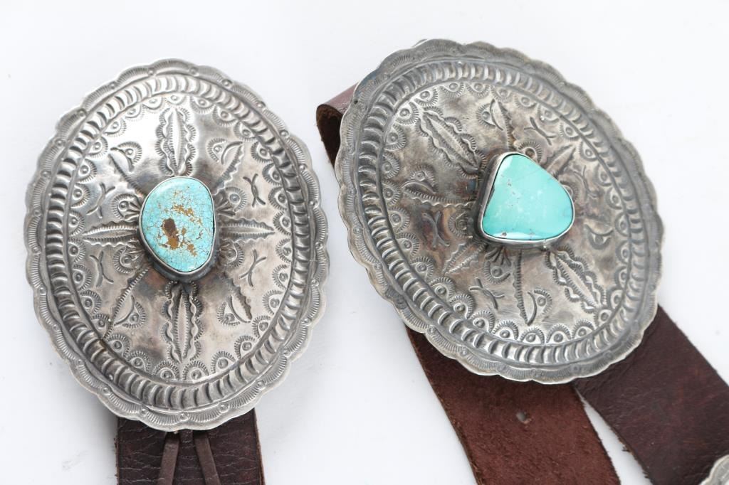 Made by Joahn Begay, 8 Heavy Sterling Concho with turquoise accents.