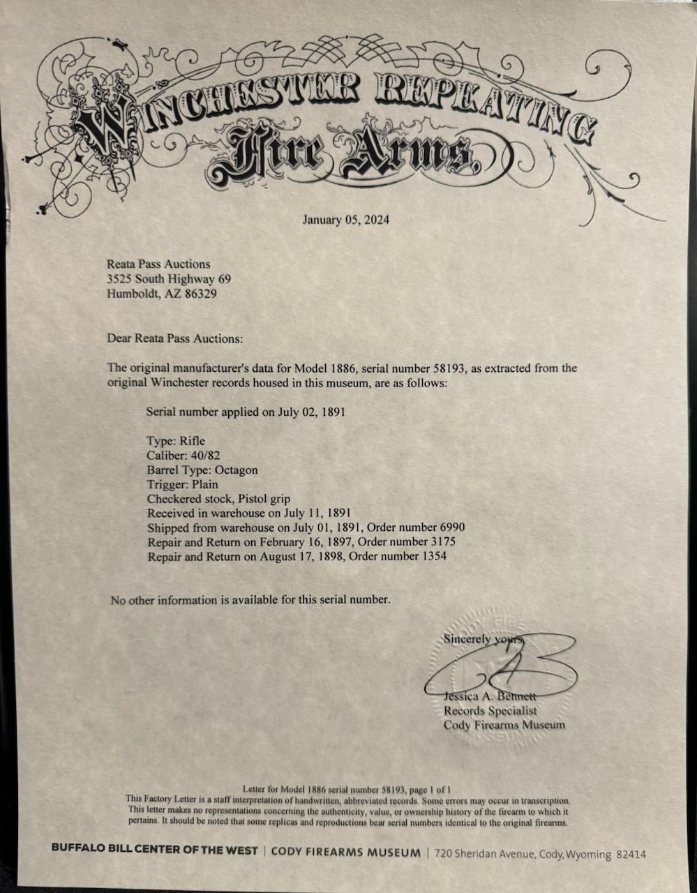 Lot 34 Winchester 1886 Deluxe .40-82 SN: 58193