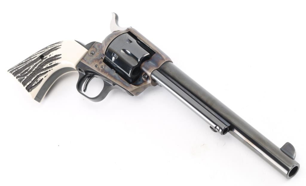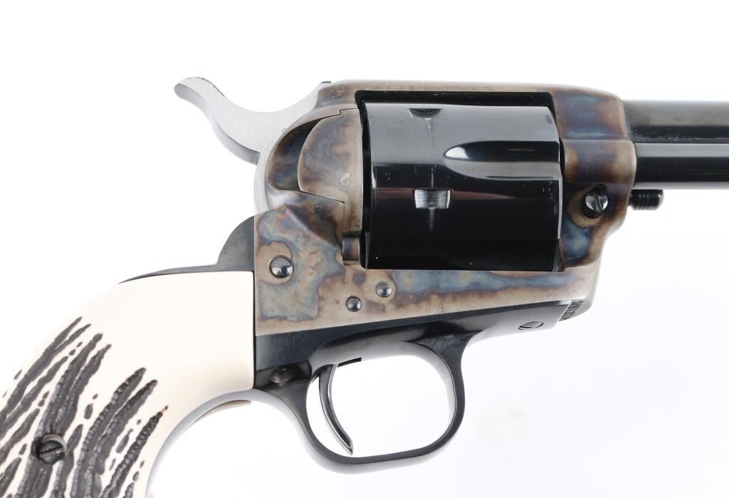 'Late Third Generation (or Fourth)' revolver manufactured circa 2012 or later. Features 7.5" barrel, blued/case colored finish, one piece polymer faux stag grip. Retains 98% finish, with pristine bore. Includes Colt blue plastic case, original checkered black polymer Colt "Eagle" grips. Condition is NRA Excellent - like new *** Modern Firearm ***