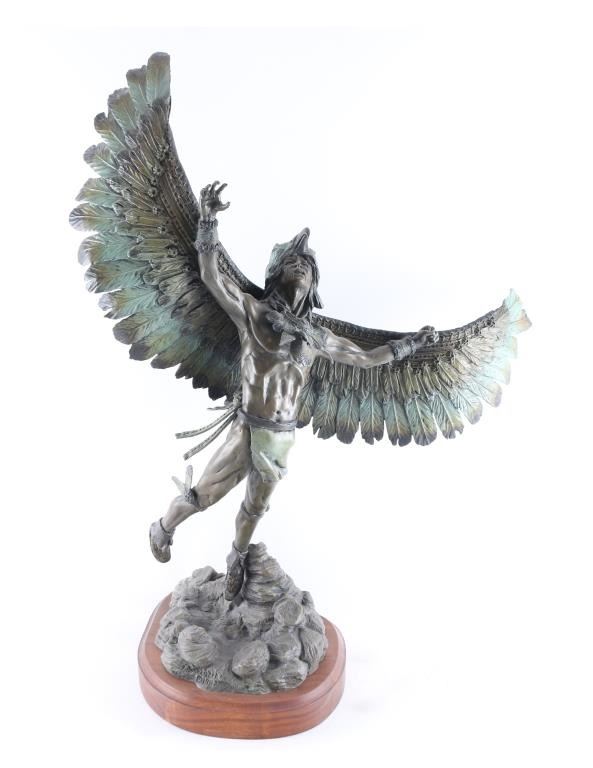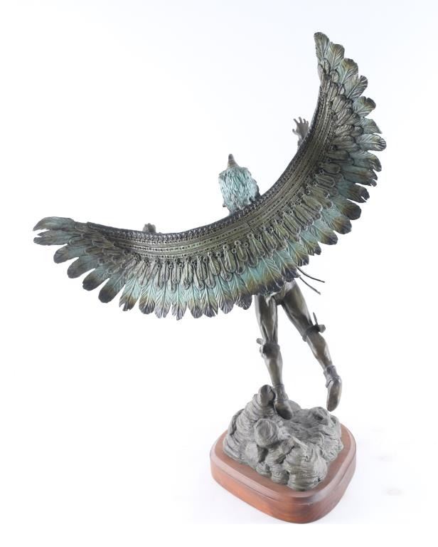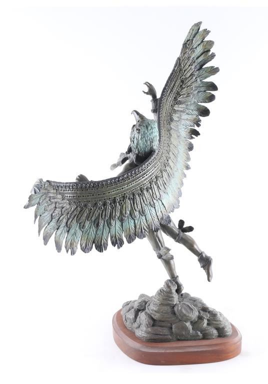 By Arizona Sculpture "John Soderberg" entitled "Sky-Dancer" dated 1982 mounted on wood base. Measures 28" x 22" x 14"