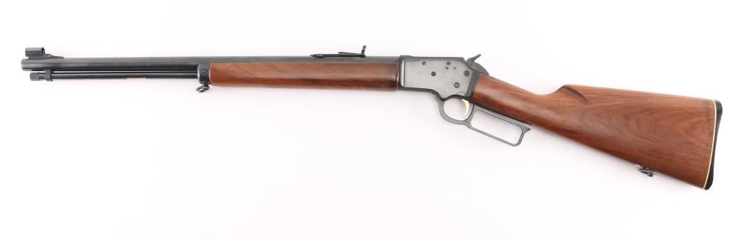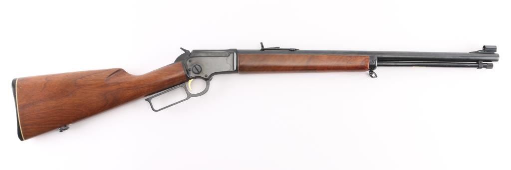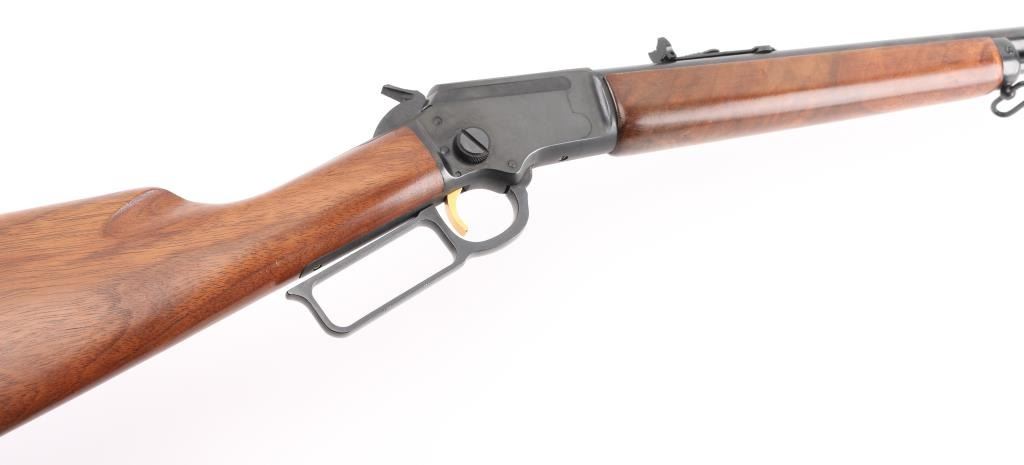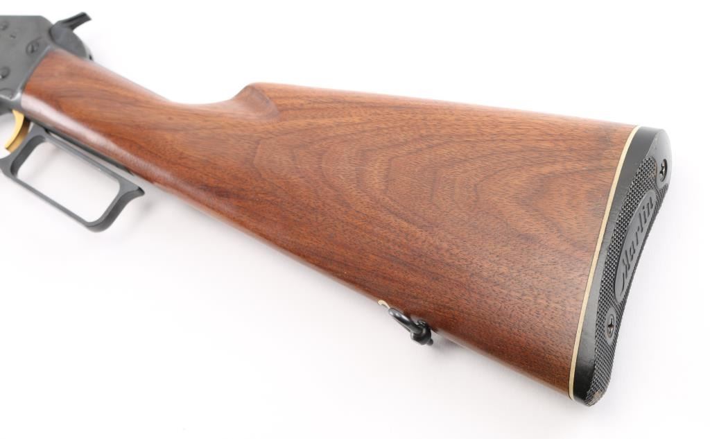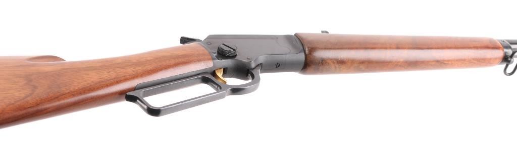 SN: 72019259. For sale is a Marlin Original Golden 39M lever-action rifle in .22 S,L,LR. JM Stamp Barrel. The "Mountie" versions of the 39A have been produced at various points in the rifle's life which featured a shorter 20" barrel and a straight stock. The Mountie has a magazine capacity of 20 Short, 16 Long, or 15 Long Rifle .22 cartridges. 20" barrel with hooded blade/brass bead front, adjustable rear sporting sights, full length tube magazine, gold toned trigger, sling swivels, receiver drilled/tapped for optics, smooth walnut forearm with steel cap, straight buttstock, factory butt plate with white spacer. Left barrel stamped "Original Golden 39M" highlighted in gold color. Bore is very good, action is crisp/tight, wood is very good with minor scratches. Blue is excellent with a few minor scratches. NRA Condition-Very Good. Modern Firearm.