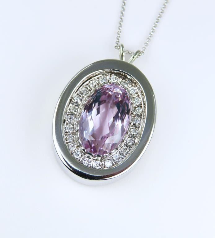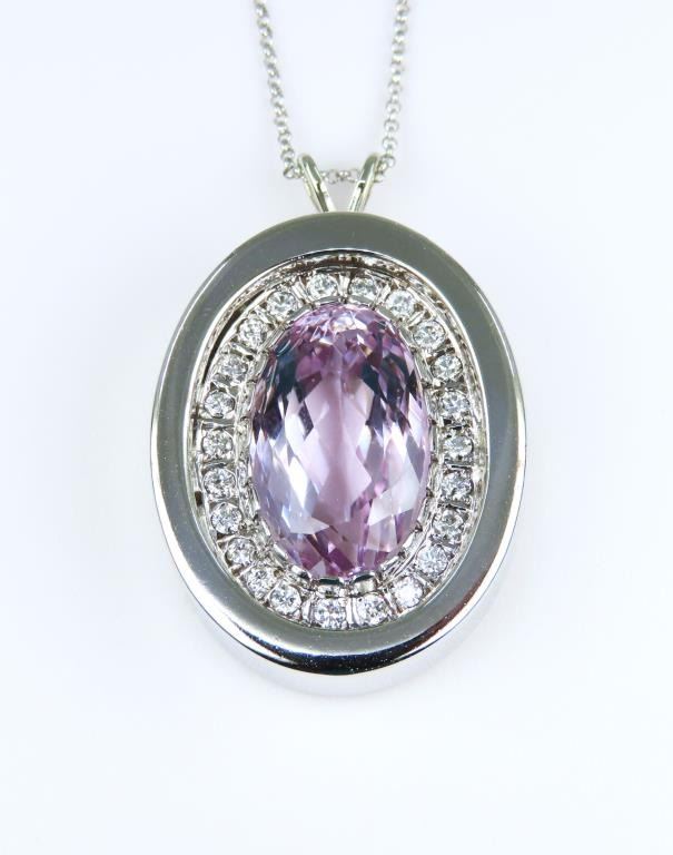 Lot 238a Stunning Pink Kunzite and Diamond Pendant