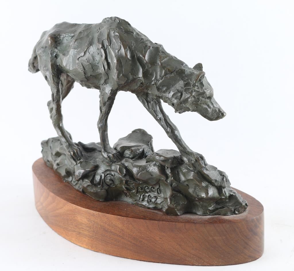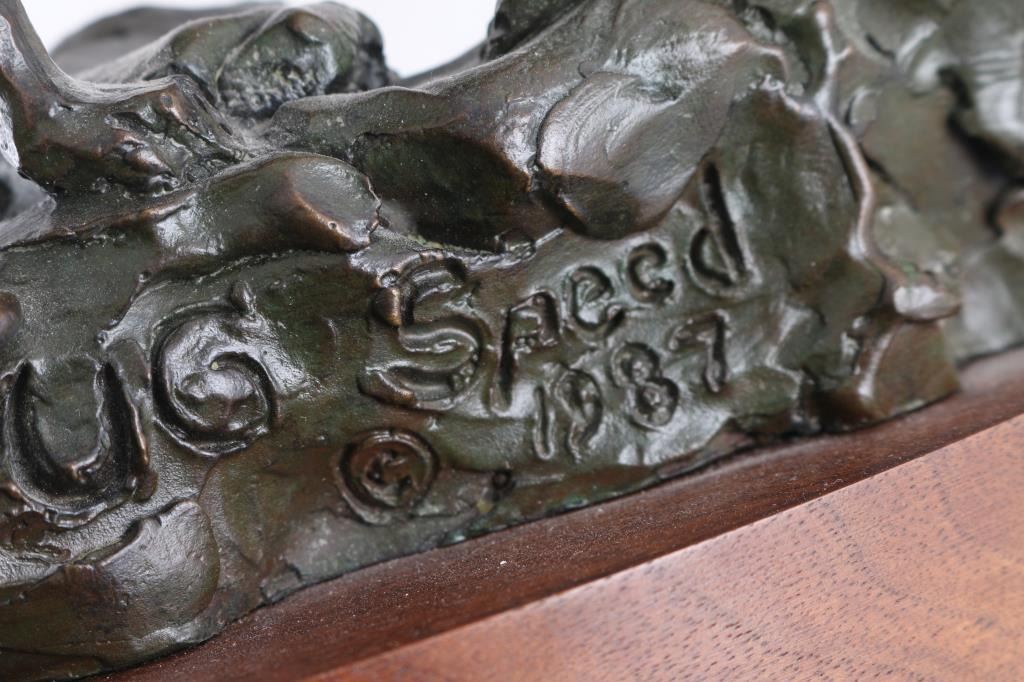 By artist "Grant Speed" signed and numbered (15/30) on base dated 1987. This piece is mounted on wood base. Measures 8.5x10.
