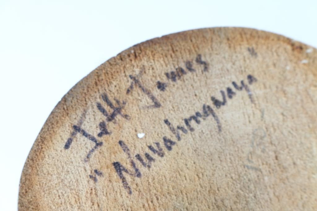 By artist "Jeff James" entitled "Nava homgnaya" signed on wood base. Measures 12x9.
