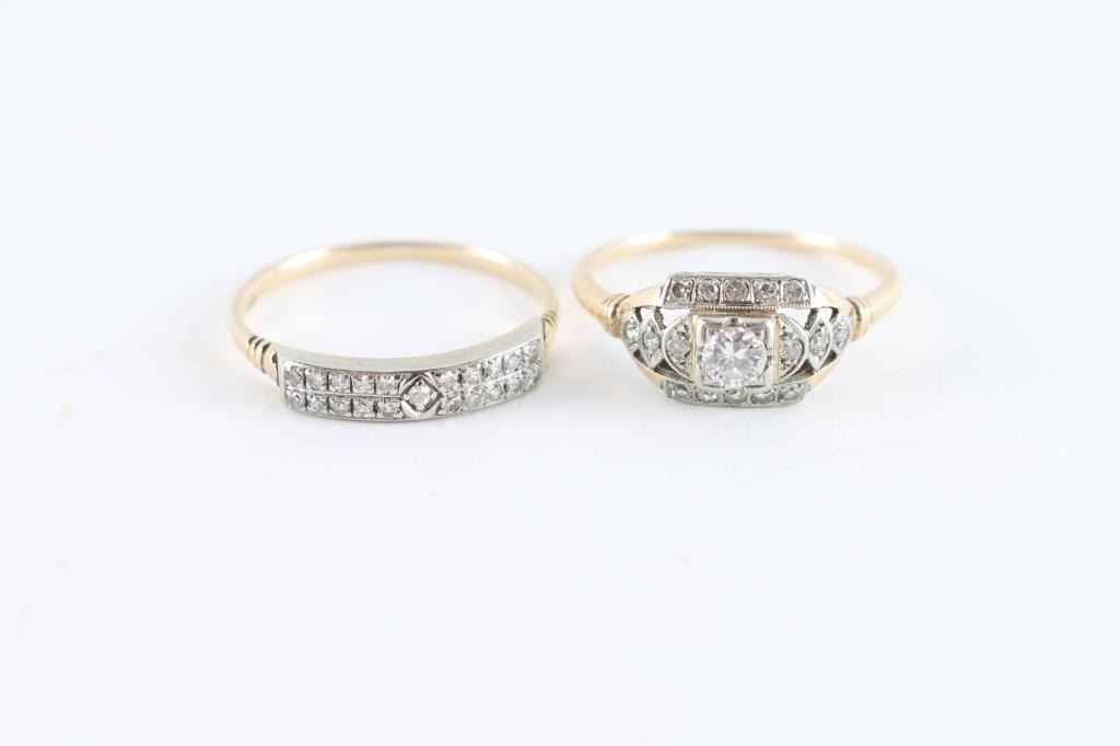 2 ring set in yellow gold 14K & 18k with white gold. Size 5.5-6.