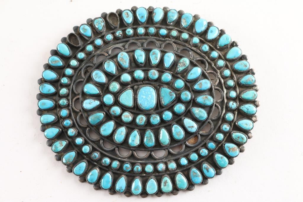 Lot 300 Old Pawn Zuni Turquoise Cluster Pin