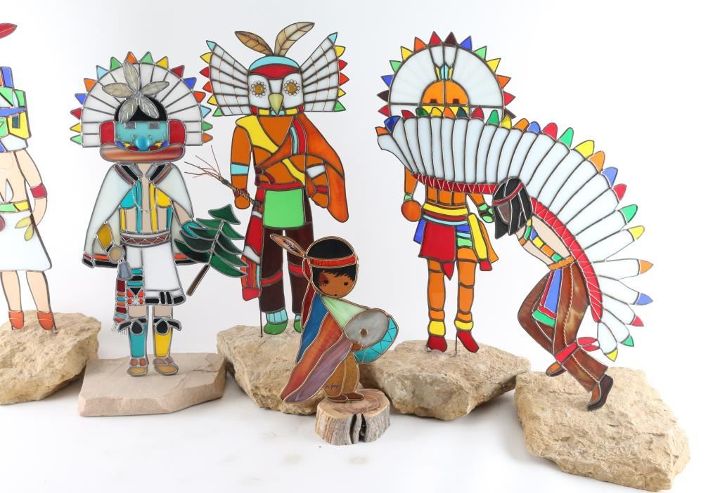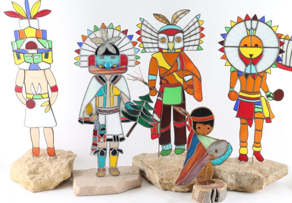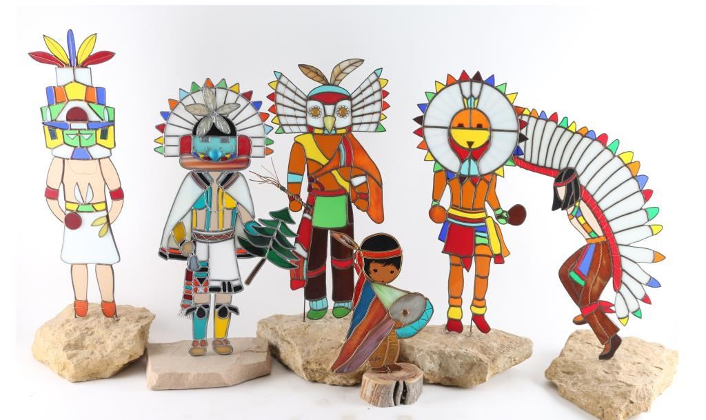 Lot 304a Lot Of Six Stained Glass Kachinas