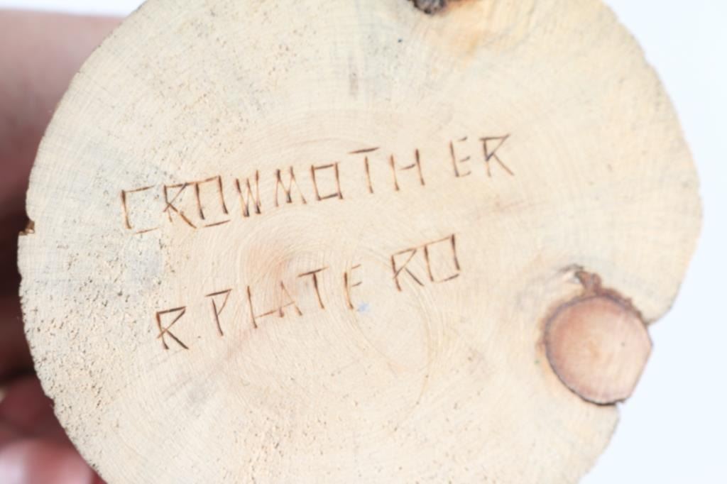 entitled "Crowmother" made by and signed R.Platfro. Measures 14'x5" In excellent condition includes original tag from the Goulding Trading Collection.