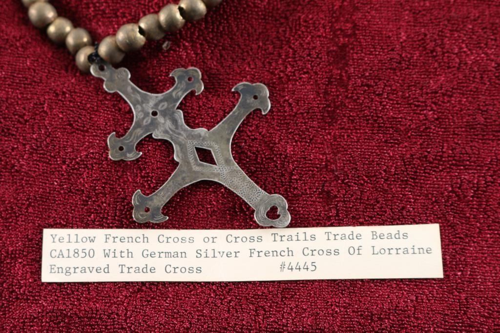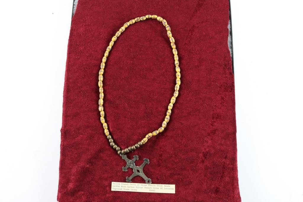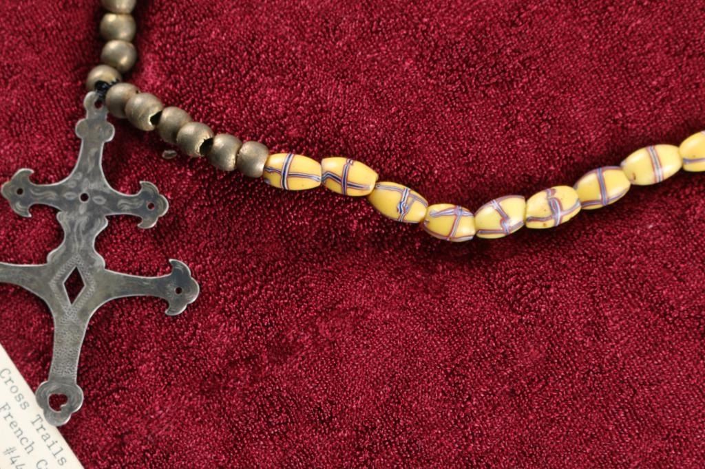 Yellow French Cross trade beads with double cross pendant.