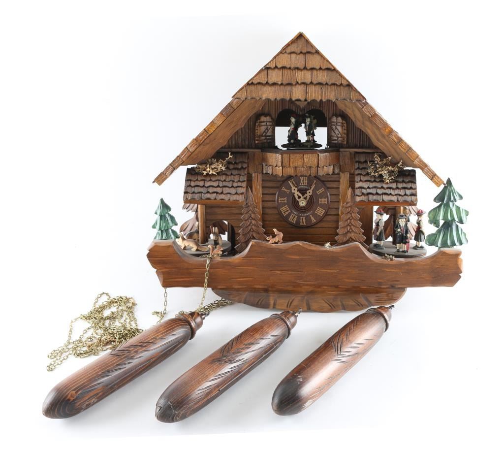 Made by "Schneider" has three automated mechanisms, in working condition. Measures 13 inches.
