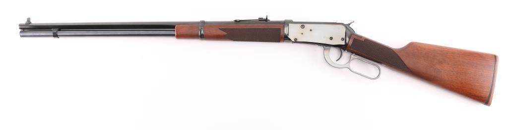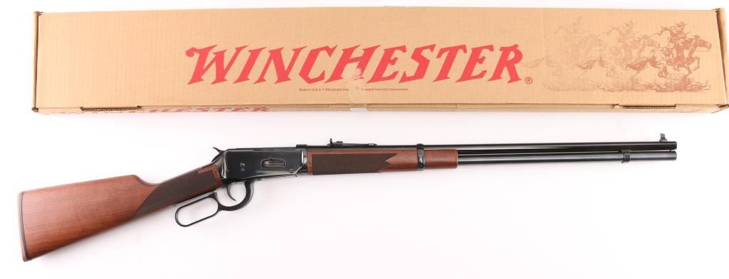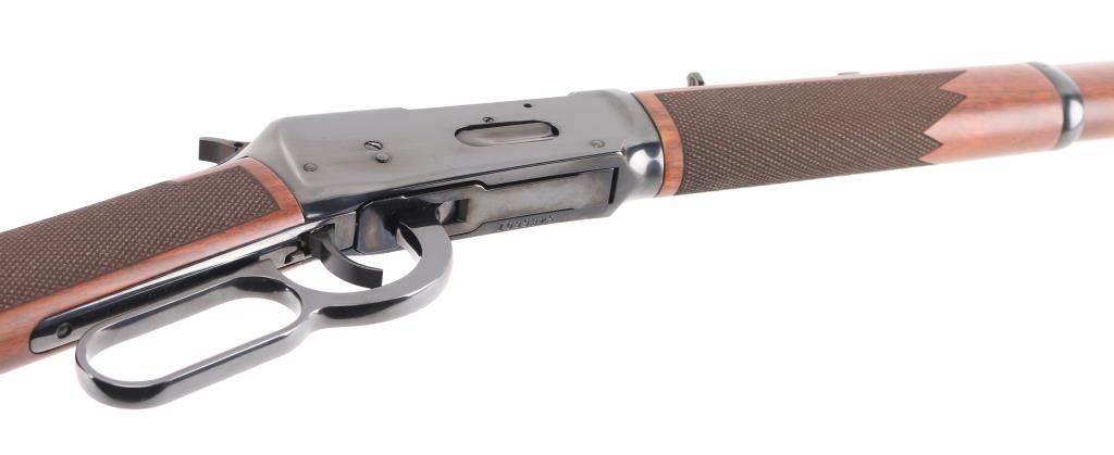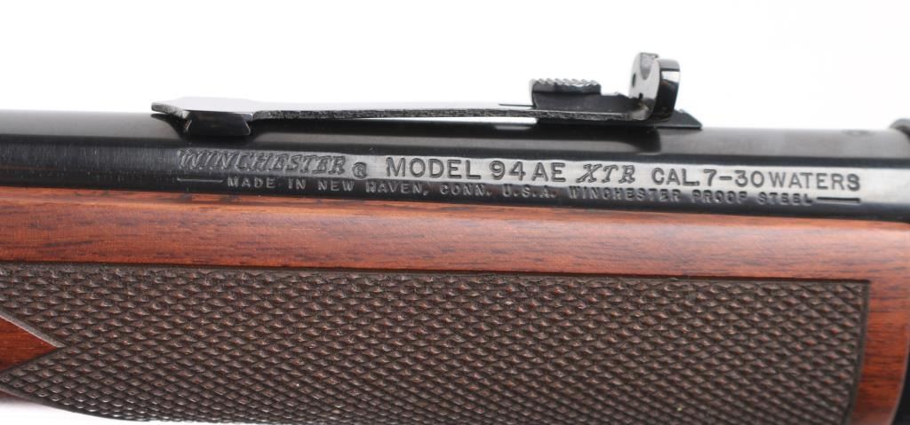 SN: 5486607. Winchester Model 94AE XTR 24" barrel with front blade, rear sporting sight, full length 7-rd tube magazine, angle eject for scope clearance, drilled/tapped. Select walnut stock & forearm with fine point checkering, red factory recoil pad. The 7-30 Waters cartridge is a 30-30 case necked down to accept a 7mm bullet, and is commercially available. Ken Waters designed this cartridge which has been proven to be extremely accurate out to 100 - 150 yard range. Bore is excellent/bright, blue & wood are excellent, like new condition. Comes in original Factory box with matching label, and paperwork. NRA Condition-Perfect in box. Modern Firearm.