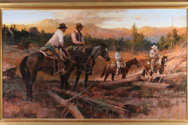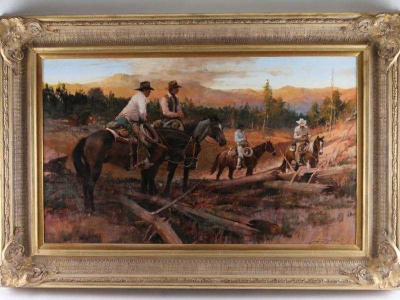 entitled "Getting a Game Plan". Image size is 40"x23" in gold frame. Gallery price was $14,000. Howard Rogers (Born 1932) is active/lives in Arizona, California. Howard Rogers is known for Female-figure-nude, and western scenes.