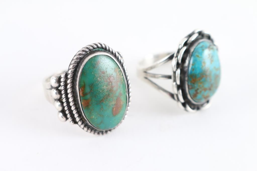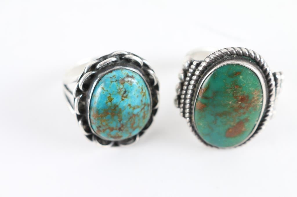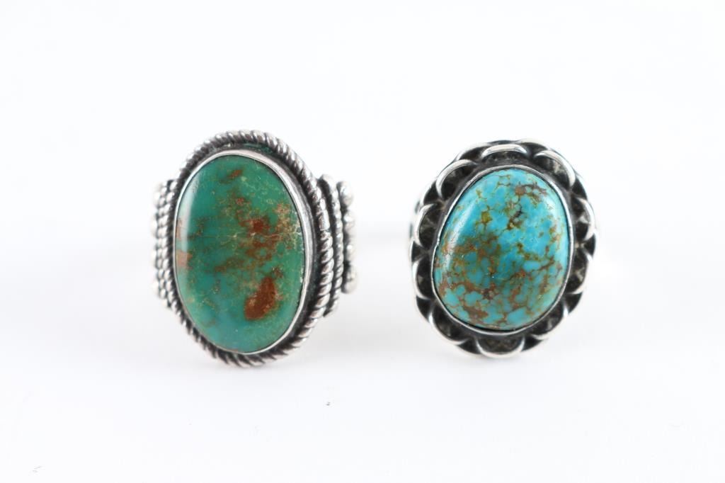 Both are turquoise set in sterling sliver both are size 9.
