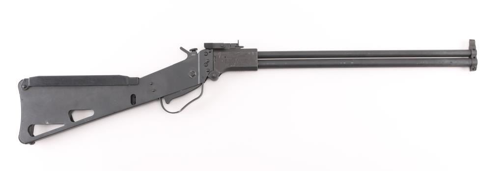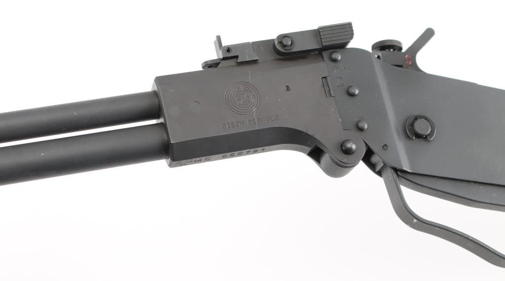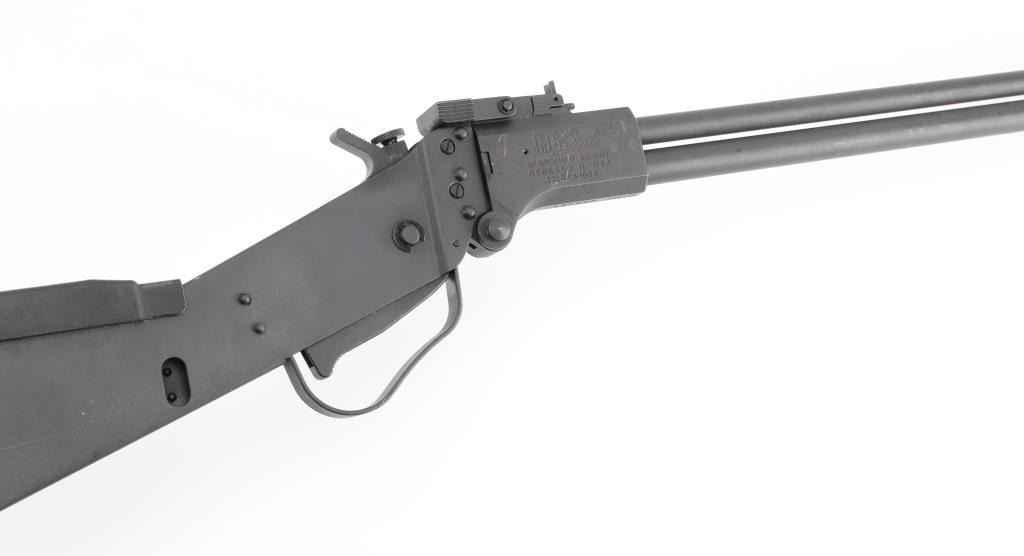 SN: MC050781 Break open over/under survival rifle made in Czech Republic, imported by Springfield Armory, Geneseo IL. in 22L & 410 Ga. Features 18" barrels, blade front sight, flip aperture peep rear sight, barrel selection button atop hammer, bar trigger, cartridge storage compartment in butt, sling stud under front of barrel, parkerized finish. Bores are excellent and bright. Some scuff marks throughout. Condition is NRA Excellent. *** Modern Firearm ***