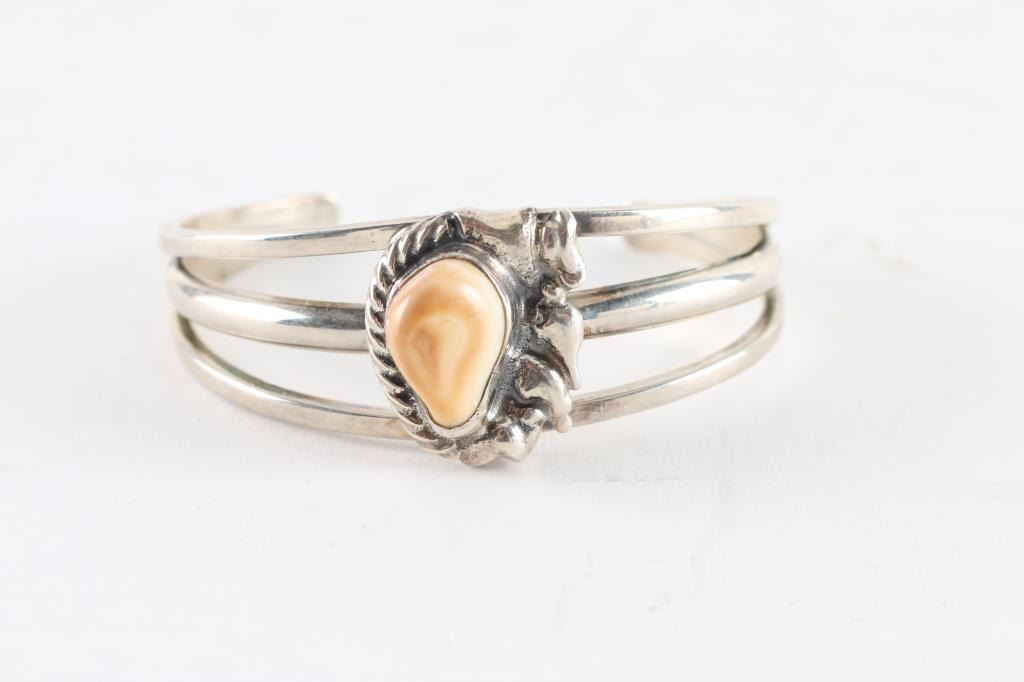 Lot 444 Elk Ivory & Sterling Cuff Bracelet