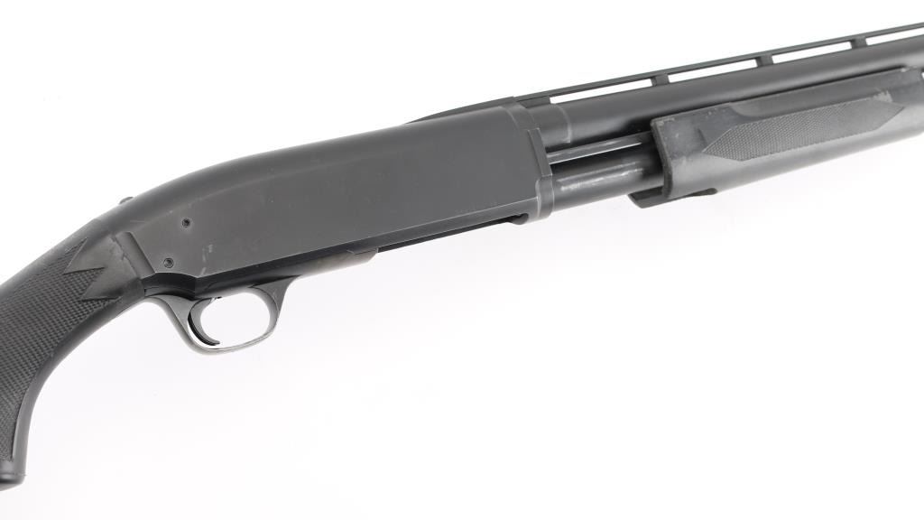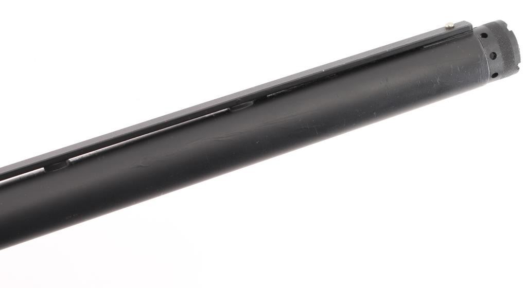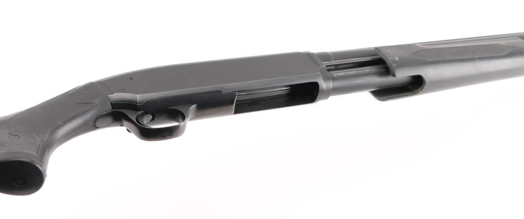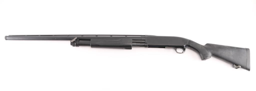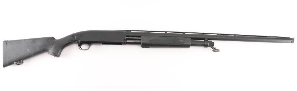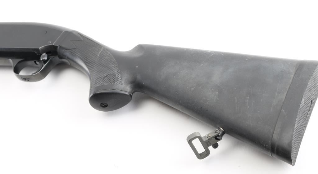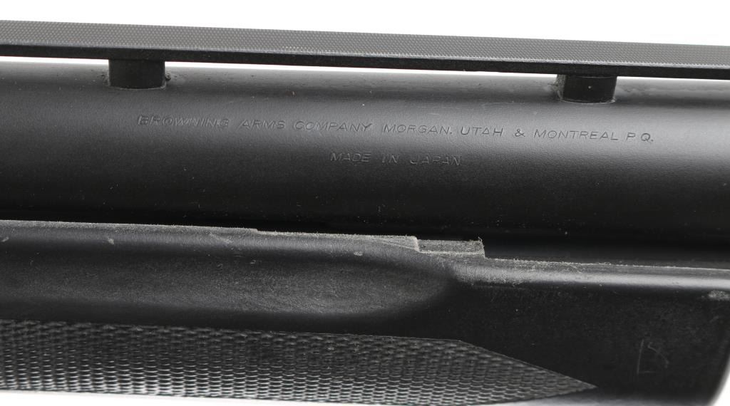SN: 04602PN192. 'Field Model' Pump/slide-action shotgun made in Japan for Browning Arms Co, Morgan UT circa 1989. (BPS Hunter Mag 10 ga. for 3 1/2" shells) Features matte black finish, black synthetic checkered pump handle and shoulder stock with checkered wrist & factory checkered solid rubber recoil pad, Stock Dimensions: DC: 1 1/4" x DH: 2 1/8" x Cast: 3/8" off at Heel x LOP: 14 1/16", Uncle Mike's 1 1/4" sling swivels, 30" checkered vent rib barrel with steel front bead sight, IC Invector choke tube installed, bottom ejecting solid receiver, manual safety, smooth faced trigger. Accepts 3 1/2" shells. Bore is very good to excellent condition. Retains 95% blue with handling marks. Stocks are very good condition with several small blemishes. Includes manual, tube wrench, FULL & IMP CYL choke tubes. Condition is NRA Excellent. Modern Firearm.
