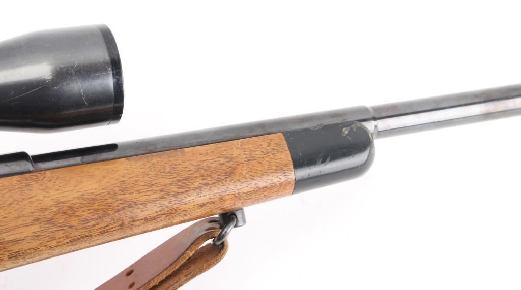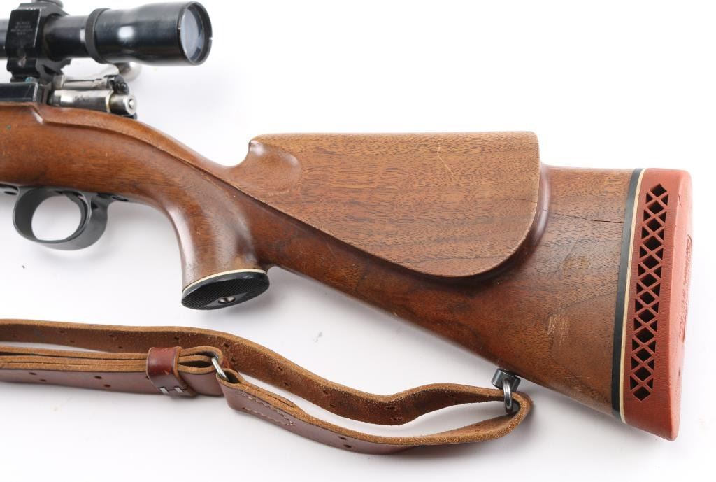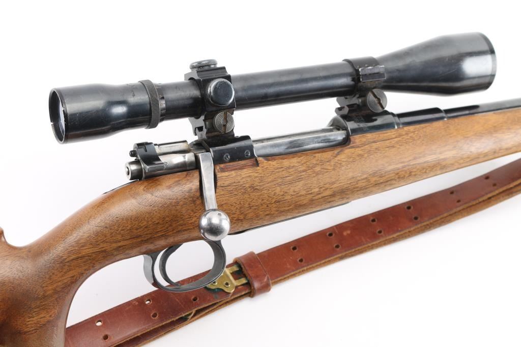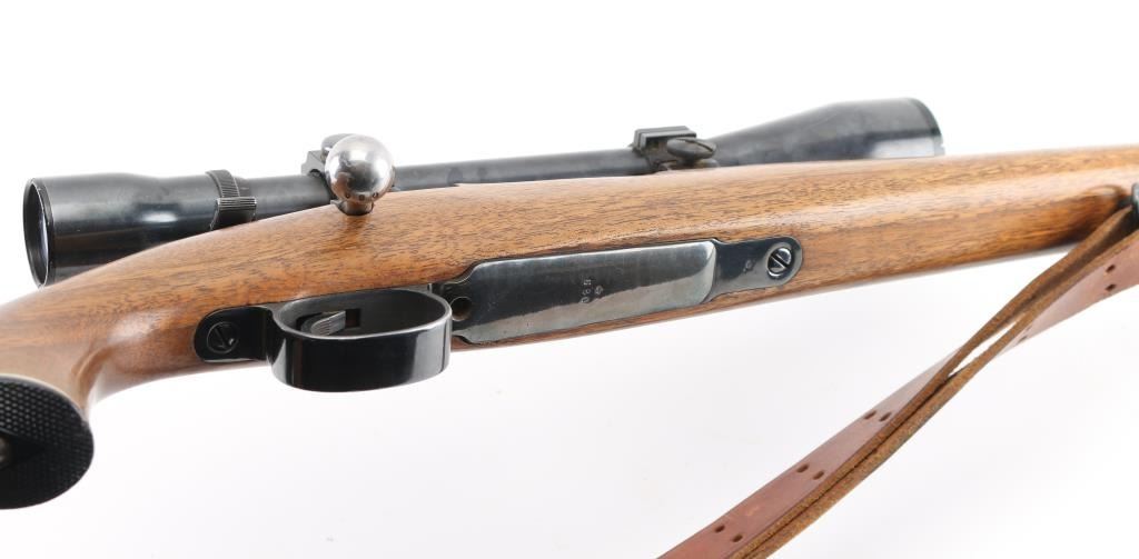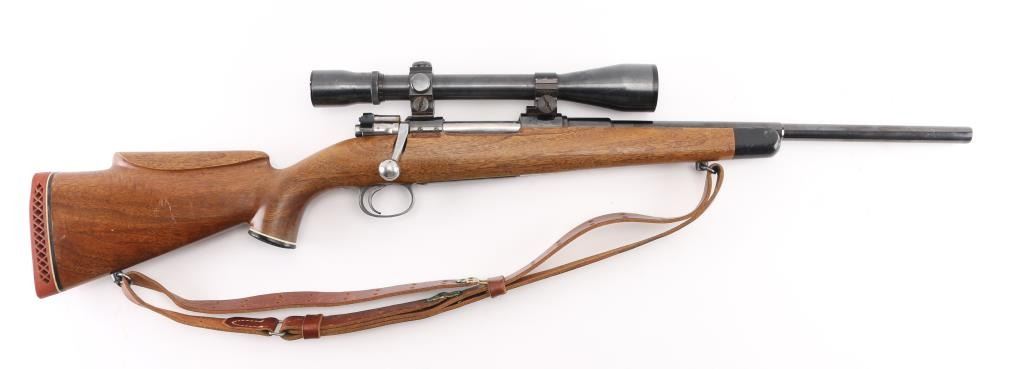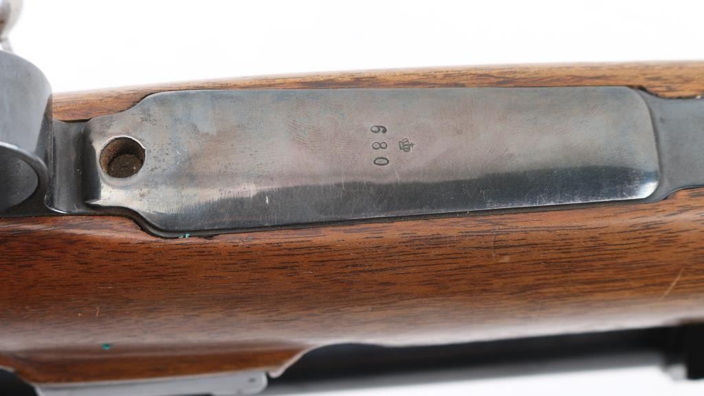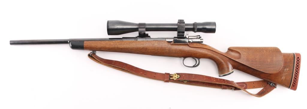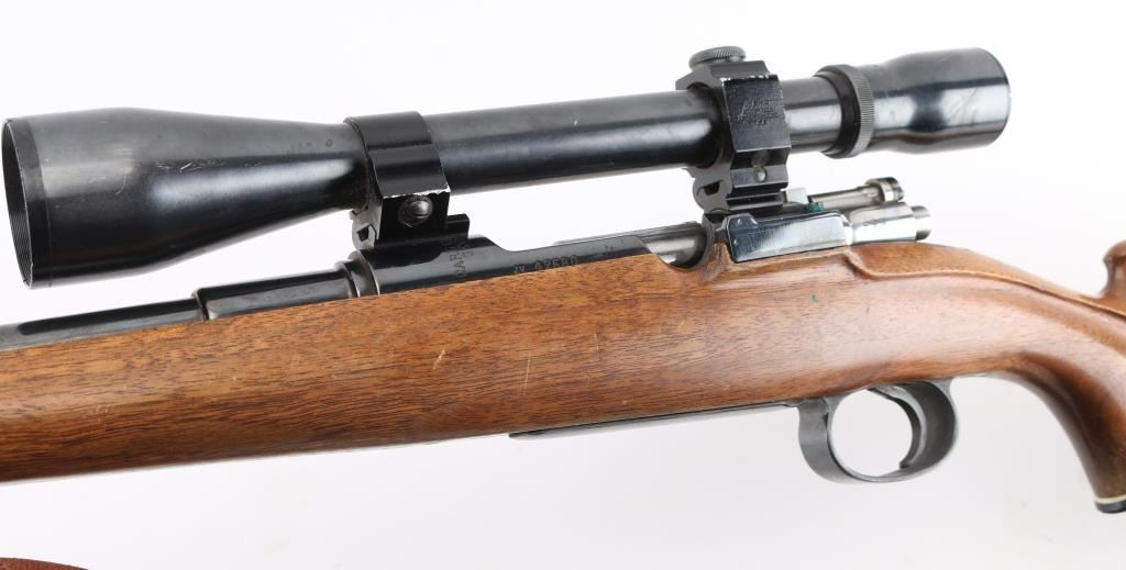 Sporterized Swedish military bolt-action service rifle chambered in 6.5x55mm. Dated 1907. Features a high polish blued finish, 16 1/2" tapered barrel, installed Weaver V8 scope on two-piece Weaver base, smooth trigger scope clearance safety, turned-down bolt handle, internal 5 round box magazine, integral stripper clip guide cuts in the receiver. Serial numbers match on the bolt release, bolt shroud, bolt handle, receiver and floorplate. High comb, shadow line cheek piece wood stock with ebony fore tip, grip cap,& rubber recoil pad. Rifle exhibits approximately 99% of it's blued refinish. Action is smooth, the bore appears very good with strong rifling, optics are good and the wood stock is very good. Condition is NRA Very Good as modified. C&R Firearm.