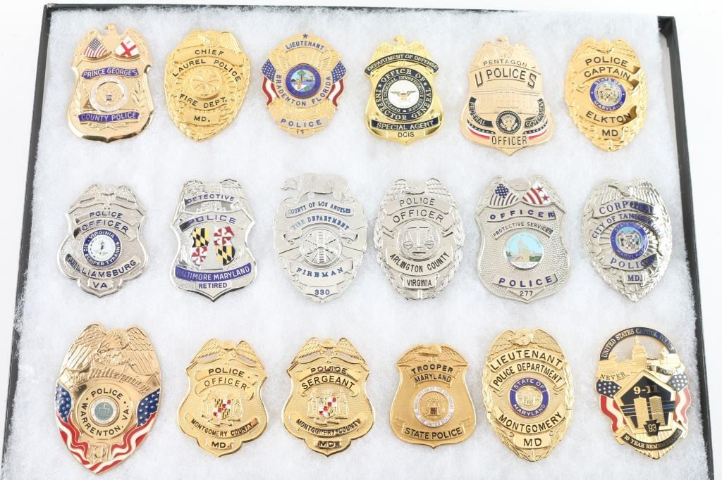 Includes badges from US Capitol Police to DOD Inspector General's. All in excellent condition.