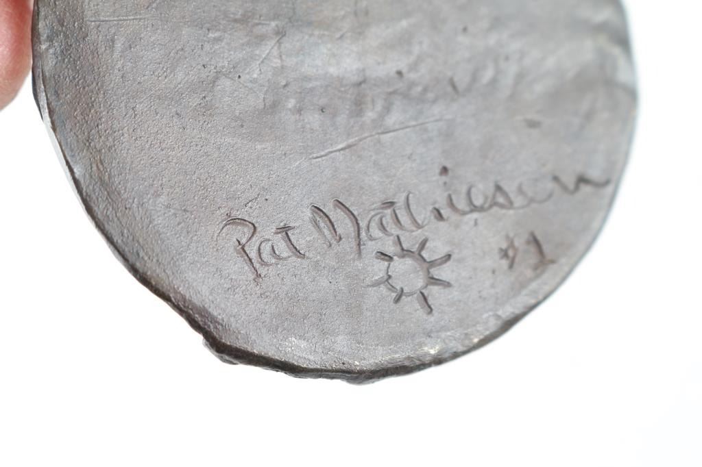 signed and made by Pat Mathiesen. Approx 2-9/16" diameter.