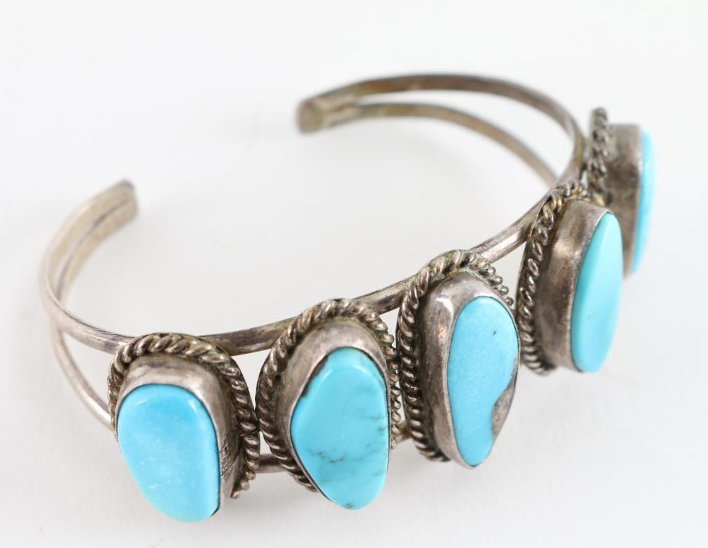 Lot 553 Navajo 5 Stone Turquoise Cuff