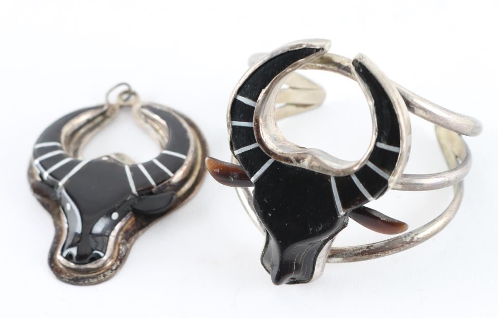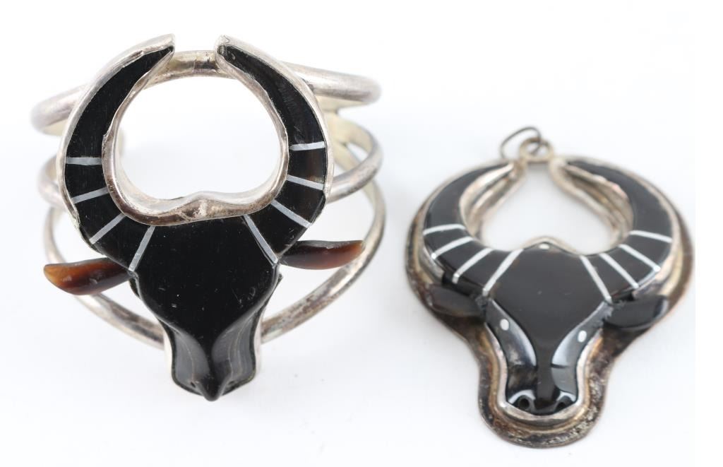 Lot 564 Onyx Bull Skull Cuff & Pendant
