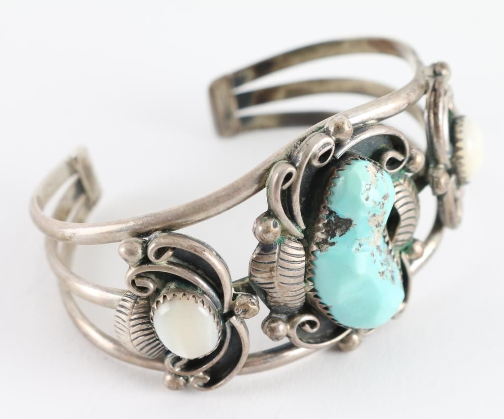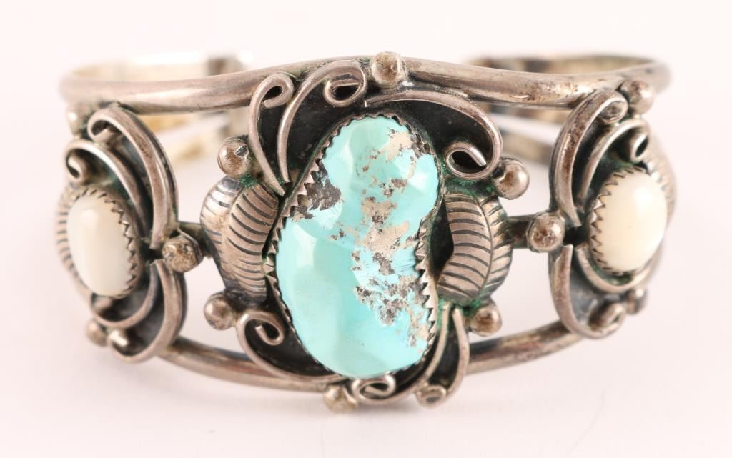 Set In Sterling With Traditional Feather Design, Unmarked.