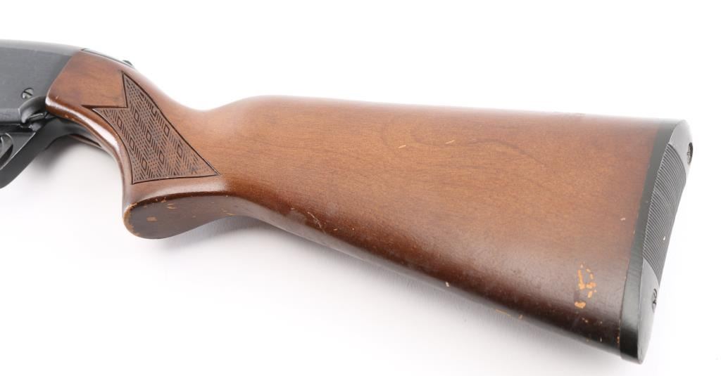SN:D246348, Pump/slide action field grade shotgun chambered in 12 Ga. for 3" shells. Blued finish, smooth wood checkered semi pistol grip stock with grooved pump handle, 28" barrel with front bead sight. Exhibits 98% of its finish with little edge wear, small scratches and minor pitting on receiver. Wood is good with nicks and small scratches. Bore and action are excellent. Condition is NRA Very Good. Modern Firearm.