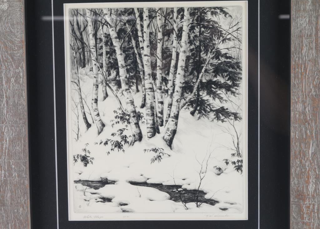 By artist "R.W Wuiceske", entitled "White Magic" signed lower right, edition 75. Nicely framed and triple matted. Image size measures 12x10.5