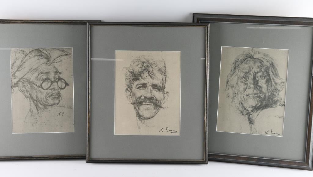 By artist "Nicolai Fechin" born in1881-1955, all portraits of elderly. Framed and double matted. Image size for each one is 13x9.