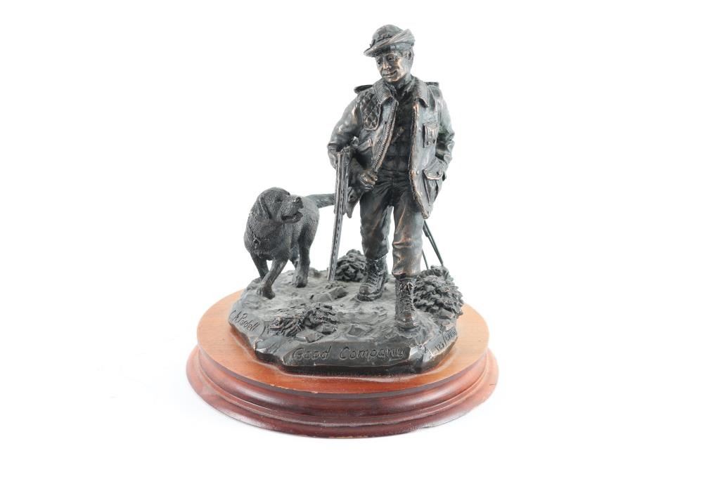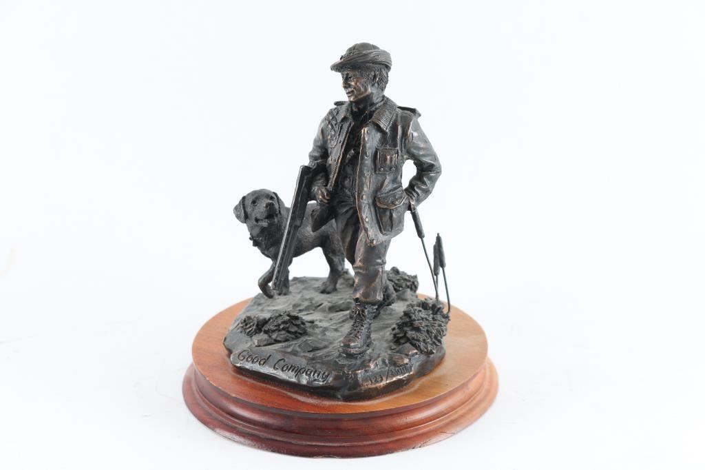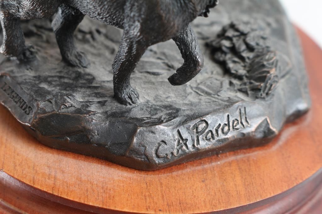 By artist "C.A Pardell" signed in bronze, entitled "Good Company" casted an mass produced by "Legends Good Company" made in USA in 1987. Numbered 125/250. Beautifully done , mounted on wood base. Measuring 6x4.5.