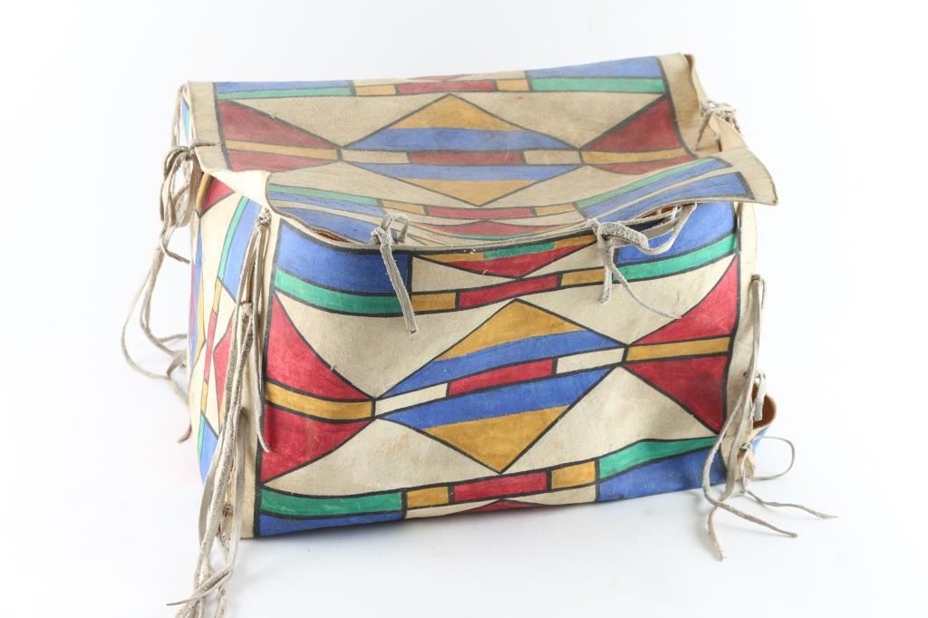 Lot 603 Vintage Plains Indian Painted Hide Box