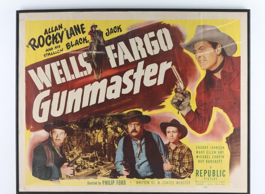 Entitled "The Wells Fargo Gunmaker", featuring Chubby Johnson, released in 1951. Framed and in great condition. Measures 23x28".