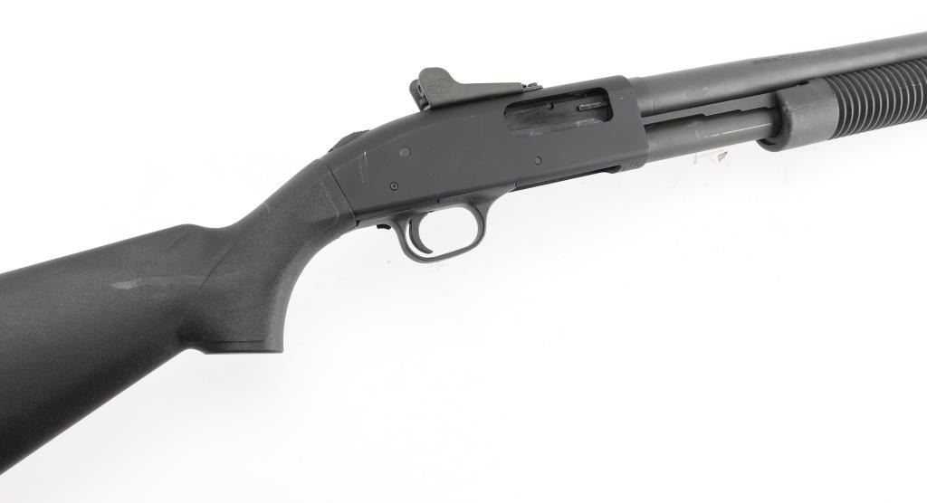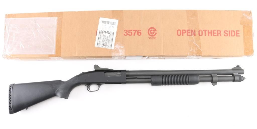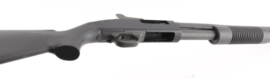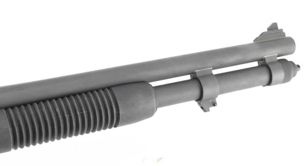 American made slide action tactical shotgun chambered for 2 3/4" & 3" 12 gauge shells. Features a parkerized 20” heavy-walled cylinder bore barrel, XS raised orange ramp front sight & shrouded adjustable ghost ring rear sight, full-length 8 round tube magazine, bayonet lug, smooth trigger, aluminum trigger guard, sliding safety on top rear of the receiver, dual action bars, black synthetic ribbed slide handle and stock with rubber recoil pad and sling swivel studs. Shotgun retains approximately 98% of its original finish showing some minor scuffs. Action is very smooth, the bore is bright and the synthetic furniture is fine. Comes with factor cardboard box, manual and lock. Condition is NRA Excellent. Modern Firearm.