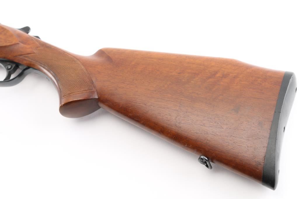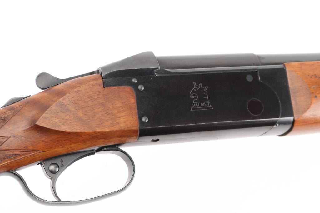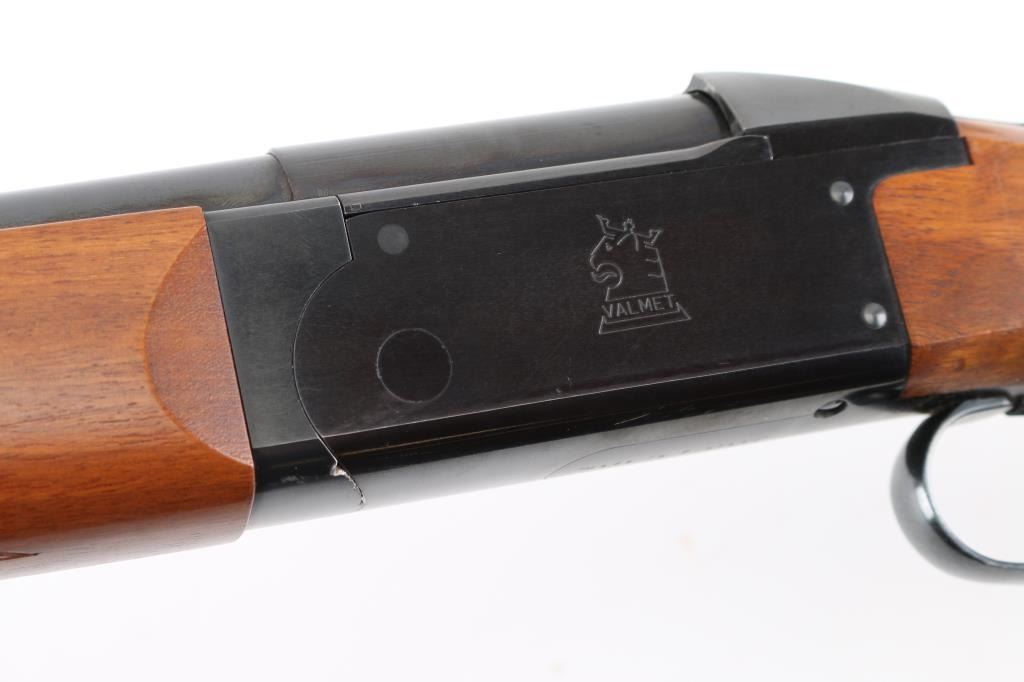 Made in Finland by Valmet. Double barrel over and under shotgun chambered in 12 Ga for 2 3/4" shells, 28" barrels, full/modified choke. Single trigger with barrel selector on the trigger assembly. Thumb safety on tang. Checkered walnut stock, and forearm. Rubber recoil pad. Retains 98% of it's finish with a couple of scuff marks on the top barrel, edge wear on the bottom of barrel break. Bores excellent excellent/bright. Action is smooth and tight. NRA Condition is Excellent. Modern Firearm.