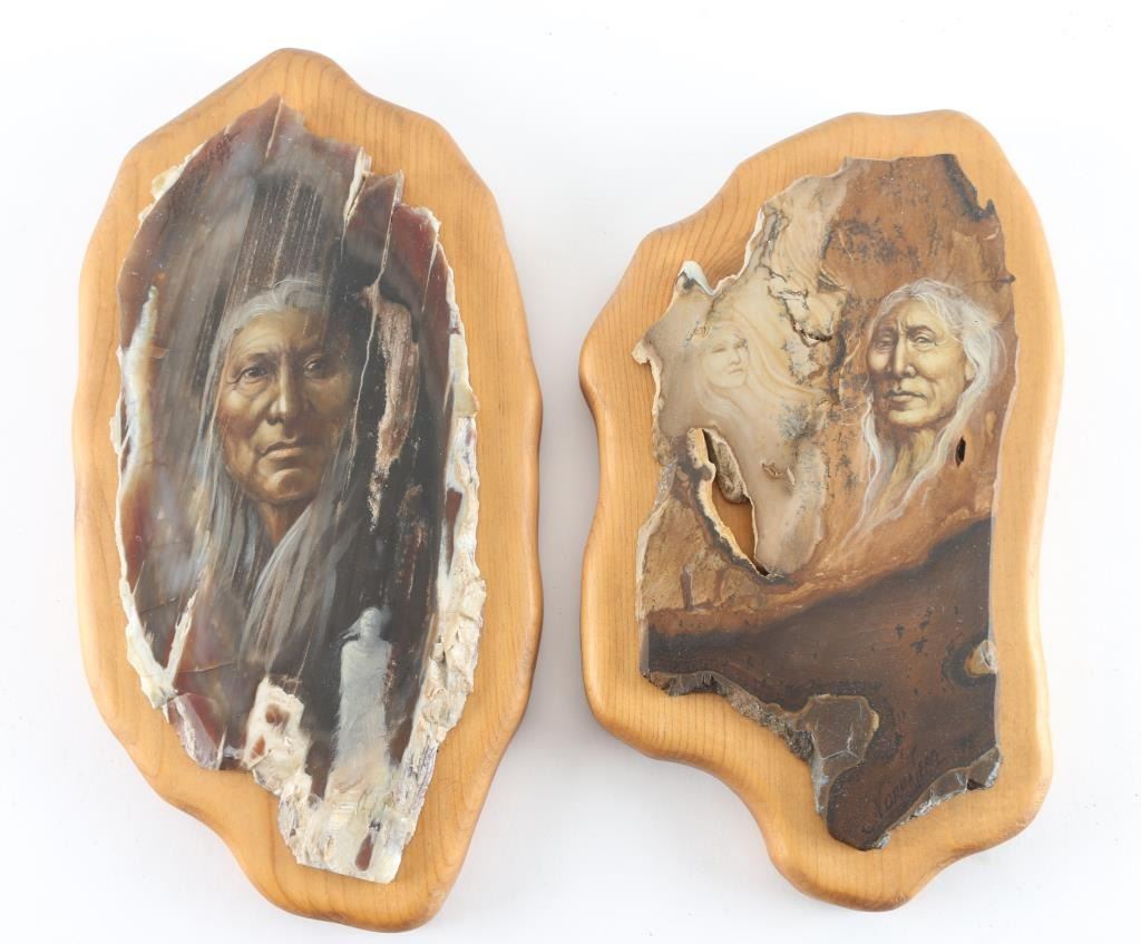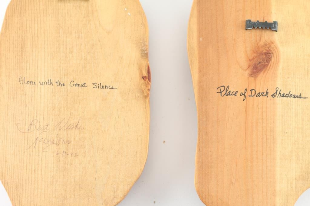 By artist "Norma Mean" dated 1992 , mounted on wood base. Both Measuring 7x3.5 in good condition. Nicely done.