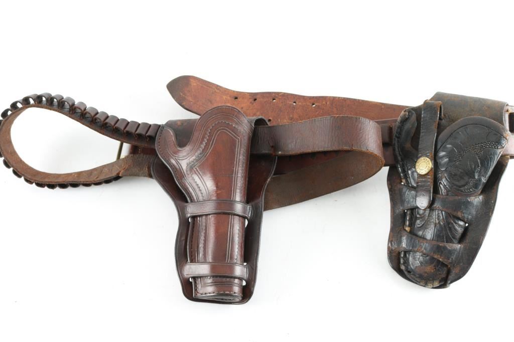 1) Plain leather rig with Heiser holster 2) Brauer Belt & Holster