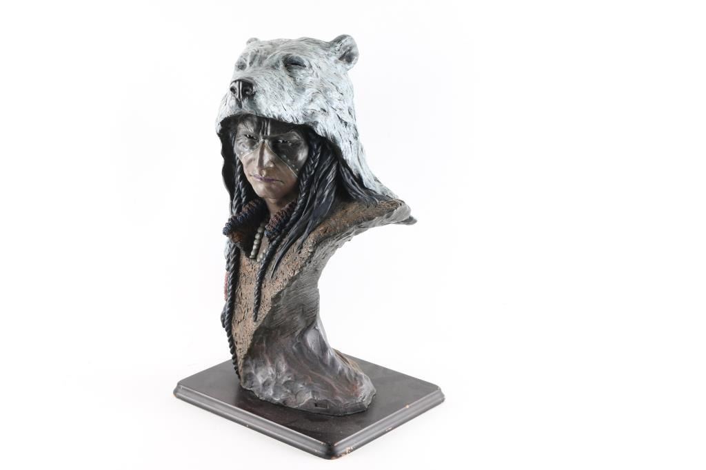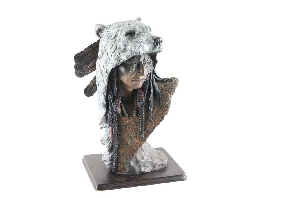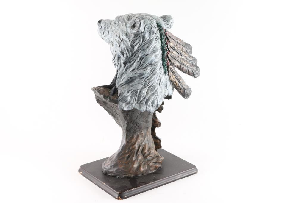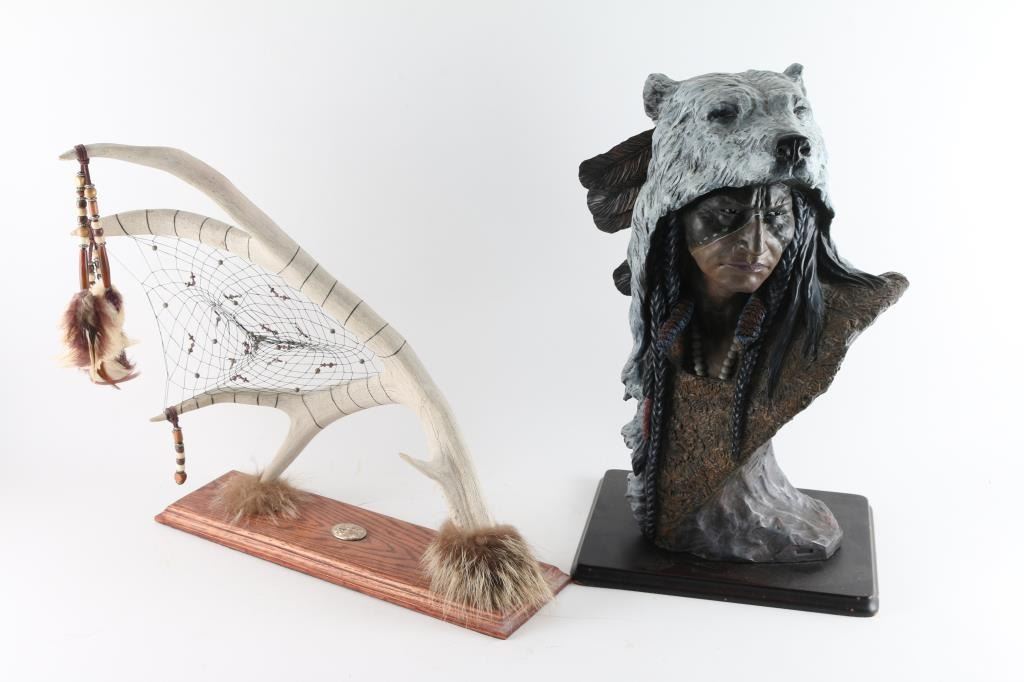 1) Bear warrior statue measures 18"x11". 2) Antler dream catcher with bead accents.