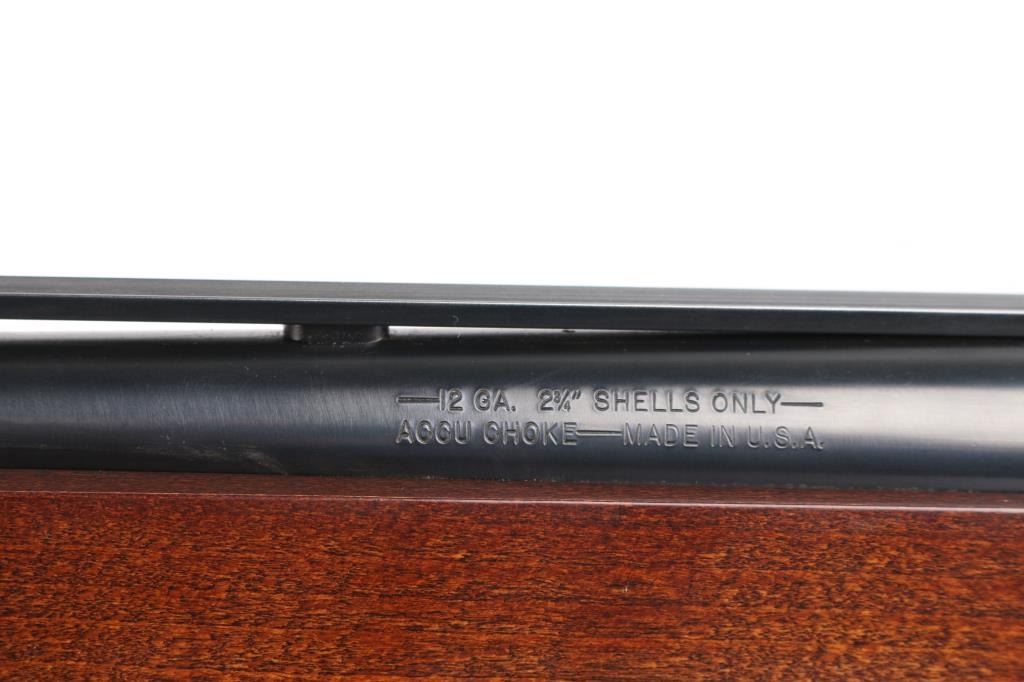 Semi-automatic shotgun chambered in 12 Gauge for 2 3/4" shells circa 1983-86. 28" serrated vent rib blued barrel with brass bead front sight, checkered wood semi-pistol grip stock and forearm with black checkered butt plate, LOP 13 1/4", modified choke, smooth trigger and tang safety. Retains 99% of blue finish with little to no wear. Wood is excellent with one scratch on left bottom edge of pistol grip. Bore and action are excellent. Comes with (2) Accu chokes: Imp Cyl and FULL. Condition is NRA Excellent. Modern Firearm.