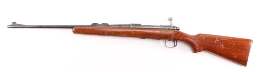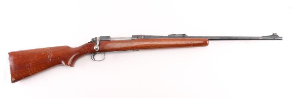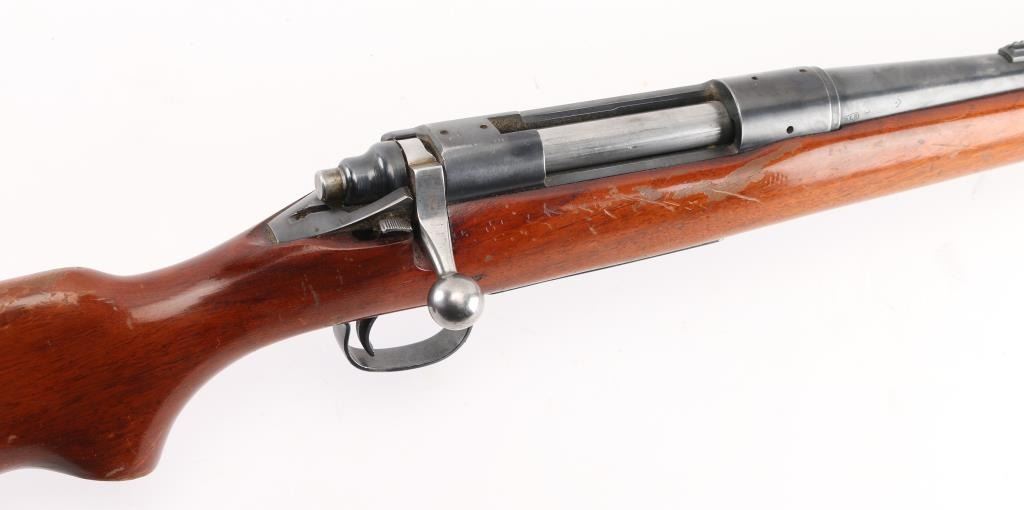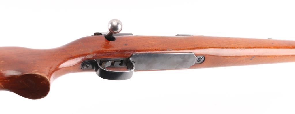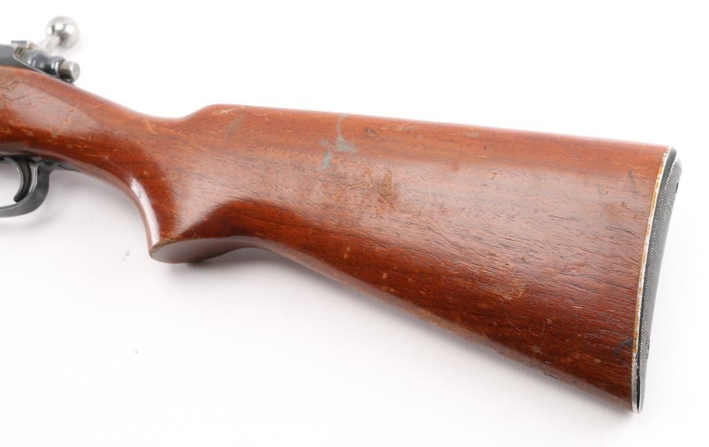 Vintage bolt action rifle circa 1958. Features blued finish, bright metal bolt, smooth wood stock, no cheekpiece, serrated aluminum Remington buttplate, 22" barrel, ramped base front sight, sporting rear sight, receiver drilled for optics, manual safety. Bore is very good,. Retains 85% blue, thinning or fading a bit, edge losses. scuffs, minor scratches. Wood is sound, good condition with numerous scratches and scuffs, there is a small chip that has been filled with plastic wood on the lower right buttstock. Needs a good cleaning, with a refinished stock would be a really nice rifle. NRA Condition-Good. C&R Firearm.