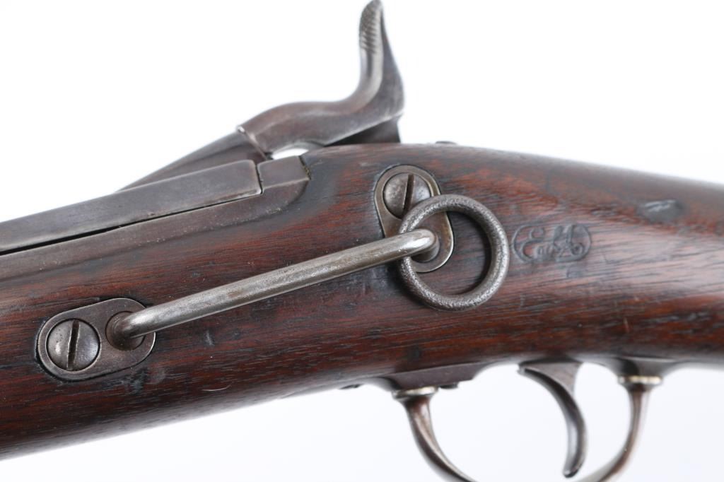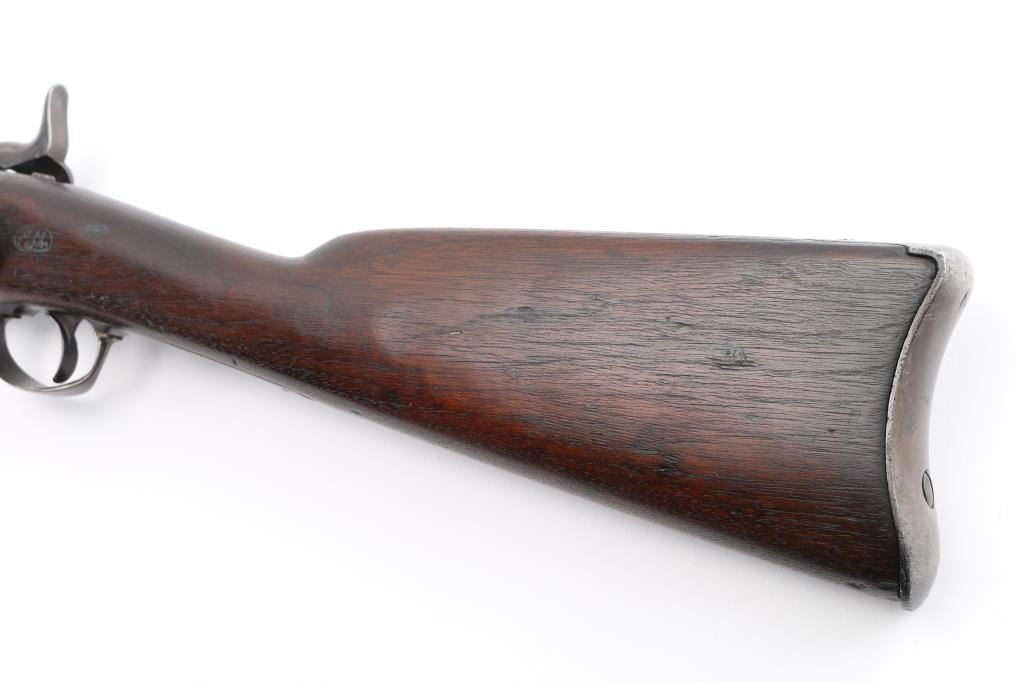 In possible Custer range. Correct markings, small parts and long wristed stock. Restored with well done re-marking of cartouches and re-browning of finish. Well marked. Action good. Bore worn. Condition is NRA Very Good **Antique Firearm** From the Joseph Musso Collection