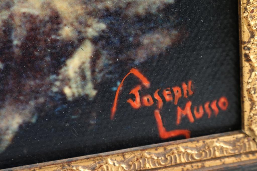 print of an original artwork by Joseph Musso, displayed at his private museum and other venues. Approx 29" x 44", in fancy gold color frame (add 1.5x to outside dimensions). Joseph Musso Collection