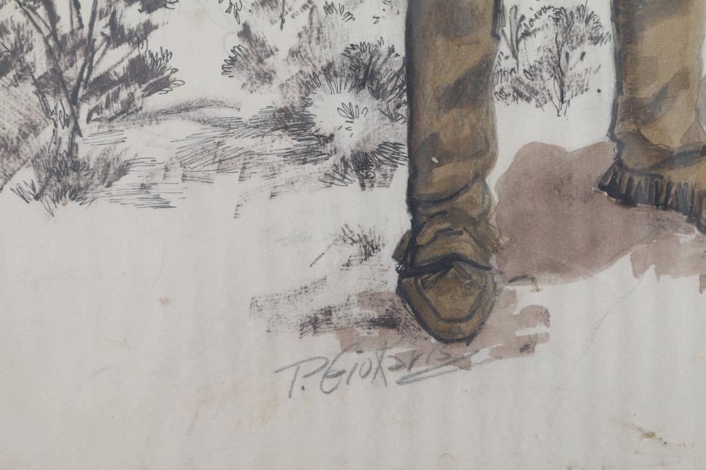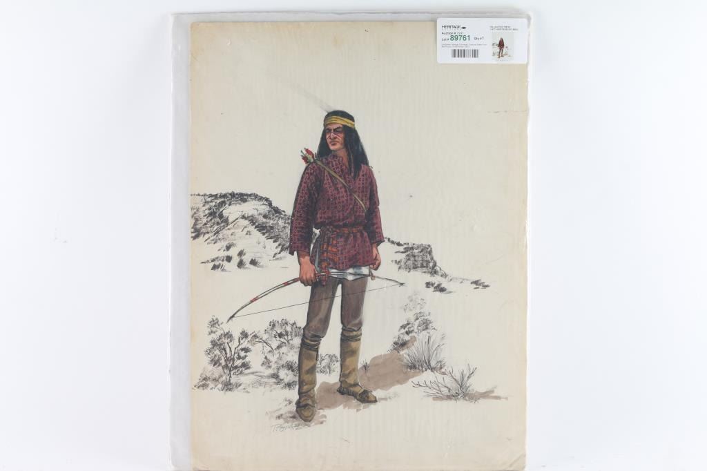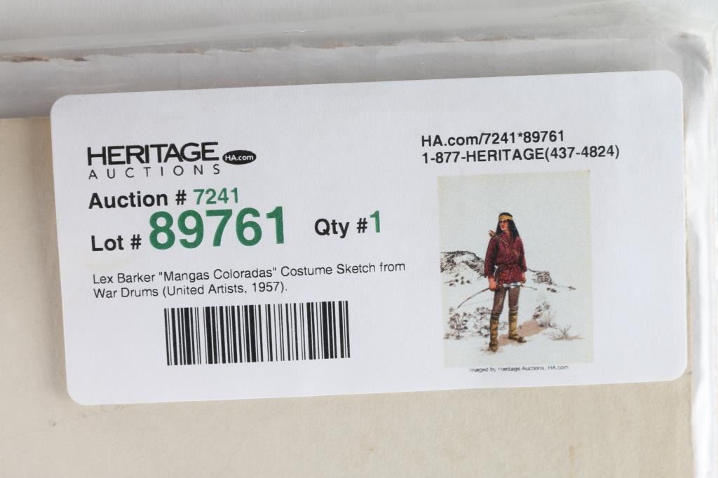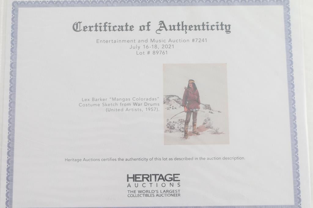 Sketch by Lex Barker for the movie, "War Drums" by United Artists in 1957. Medium is watercolor and mixed media on board. Comes with certificate of authenticity from Heritage Auctions. From the Joseph Musso Collection