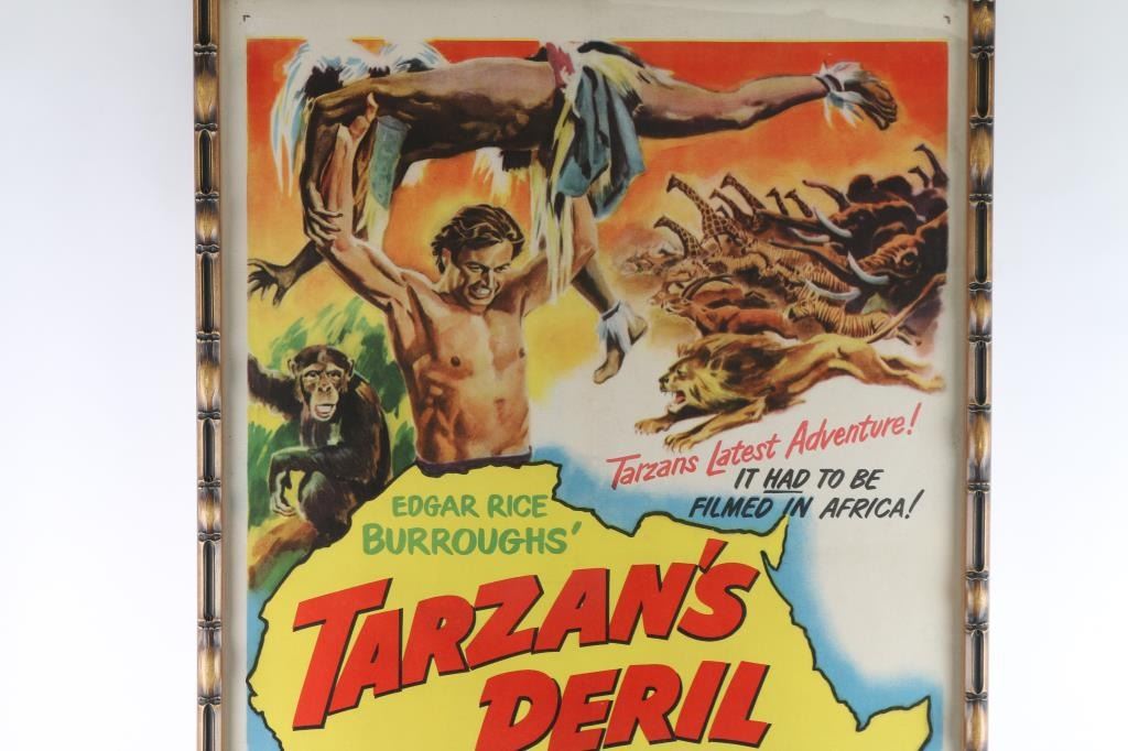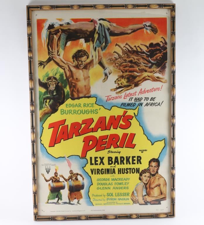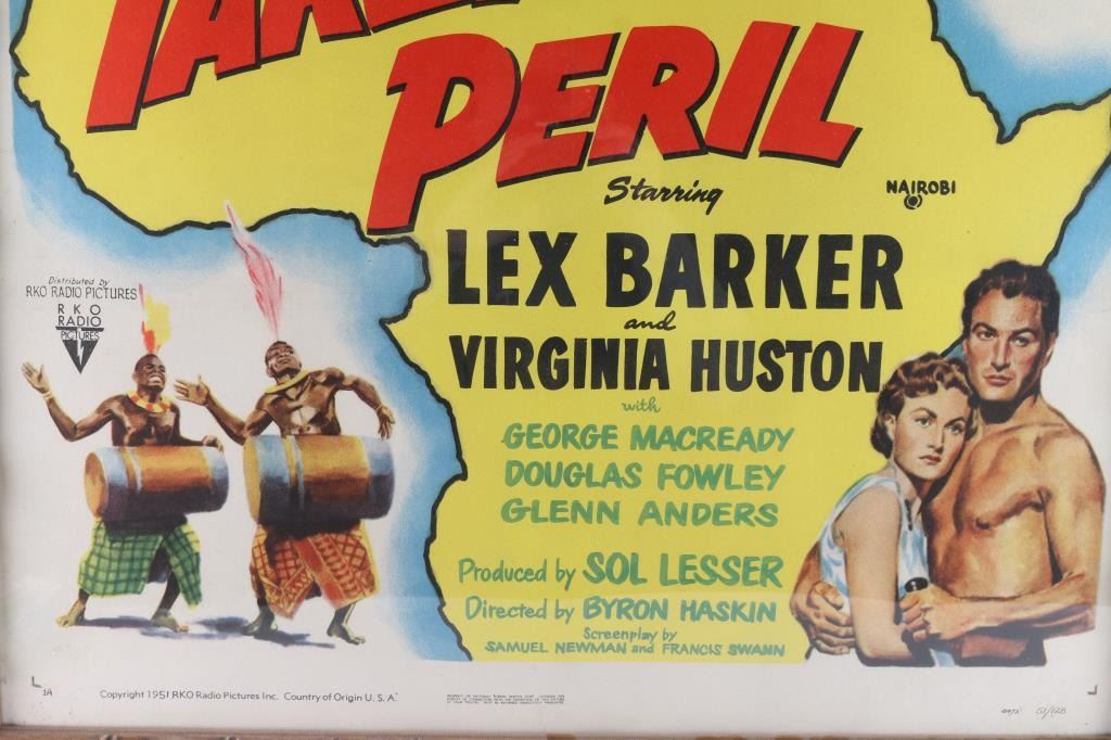 From the movie, "Tarzan's Peril", starring Lex Barker and Virginia Huston. Produced by RKO in 1951. This is #51 of 128. In Good to Very Good condition with minor aging and fading. Frame dimensions: 42"H X 28 1/2"W. From the Joseph Musso Collection