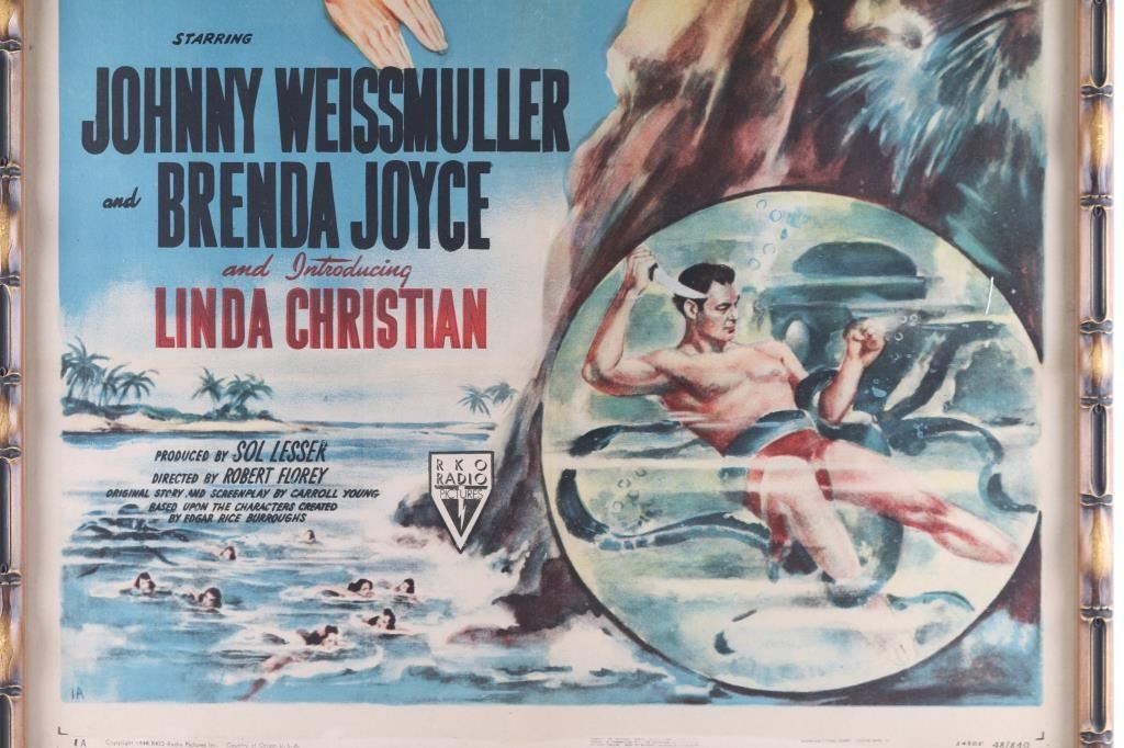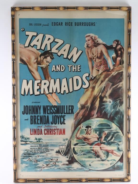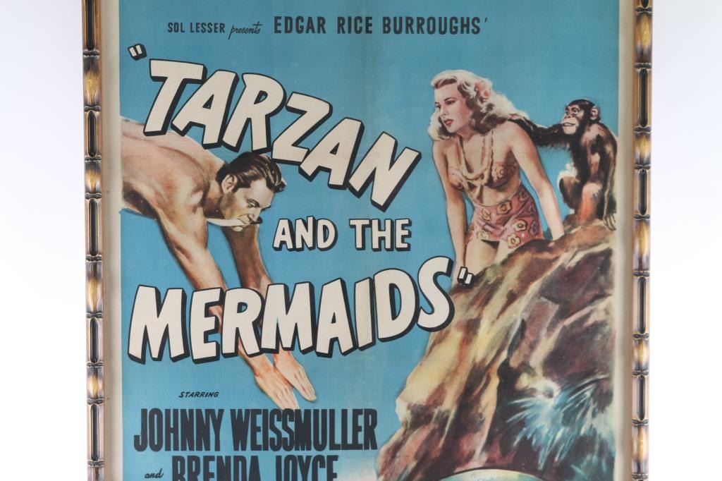 From the movie, "Tarzan and the Mermaids", starring Johnny Weismuller and Brenda Joyce. Released in 1948 by RKO Productions. Poster by Morgan Litho Corp. , Cleveland, OH. This is #487 of 840 w/property rights markings. Very good condition w/minor aging and fading. Frame dimensions: 43"H X 29"W. From the Joseph Musso Collection