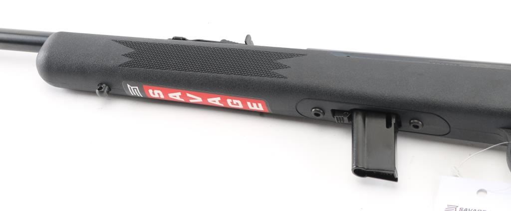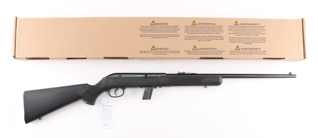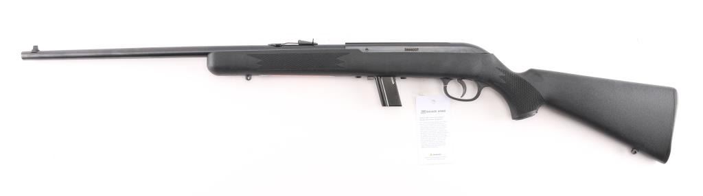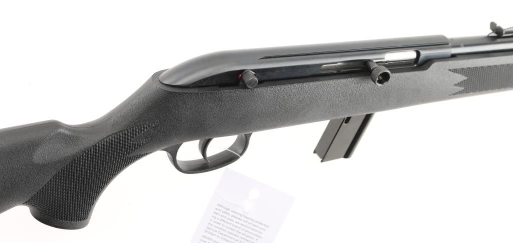 Made in Canada, this is a semi-automatic rifle chambered for .22 LR. 21 barrel with black front blade sight and black rear dovetail sight, matte synthetic stock and forearm with pressed checkering. Comes in factory cardboard box with (1) 10 round magazine, 4 x 15MM scope and mounting rings, user's manual, ear plugs and lock. NRA Condition is Excellent. Modern Firearm.