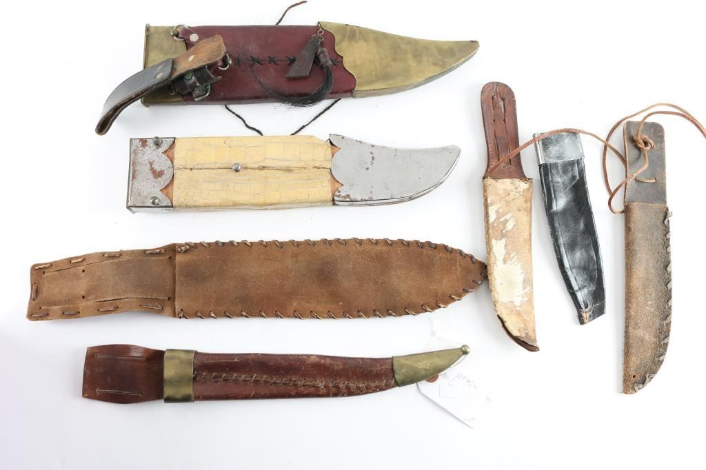 Seven movie production knife scabbards. Various sizes and materials. From the Joseph Musso Collection