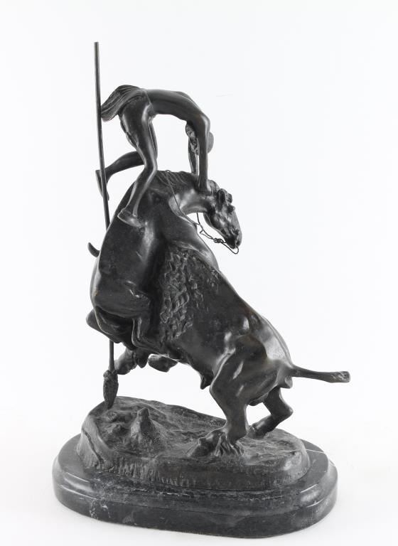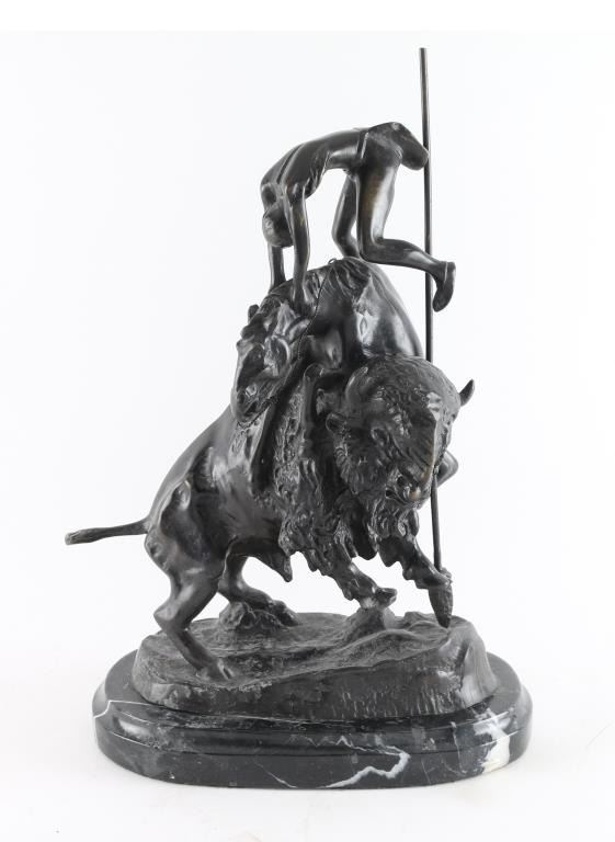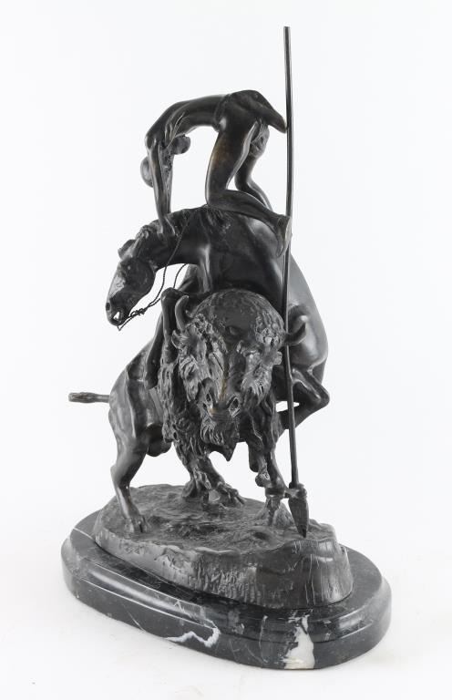 By Frederic Remington entitled "Buffalo Horse"on marble base, signed on base. Measures 16x9".