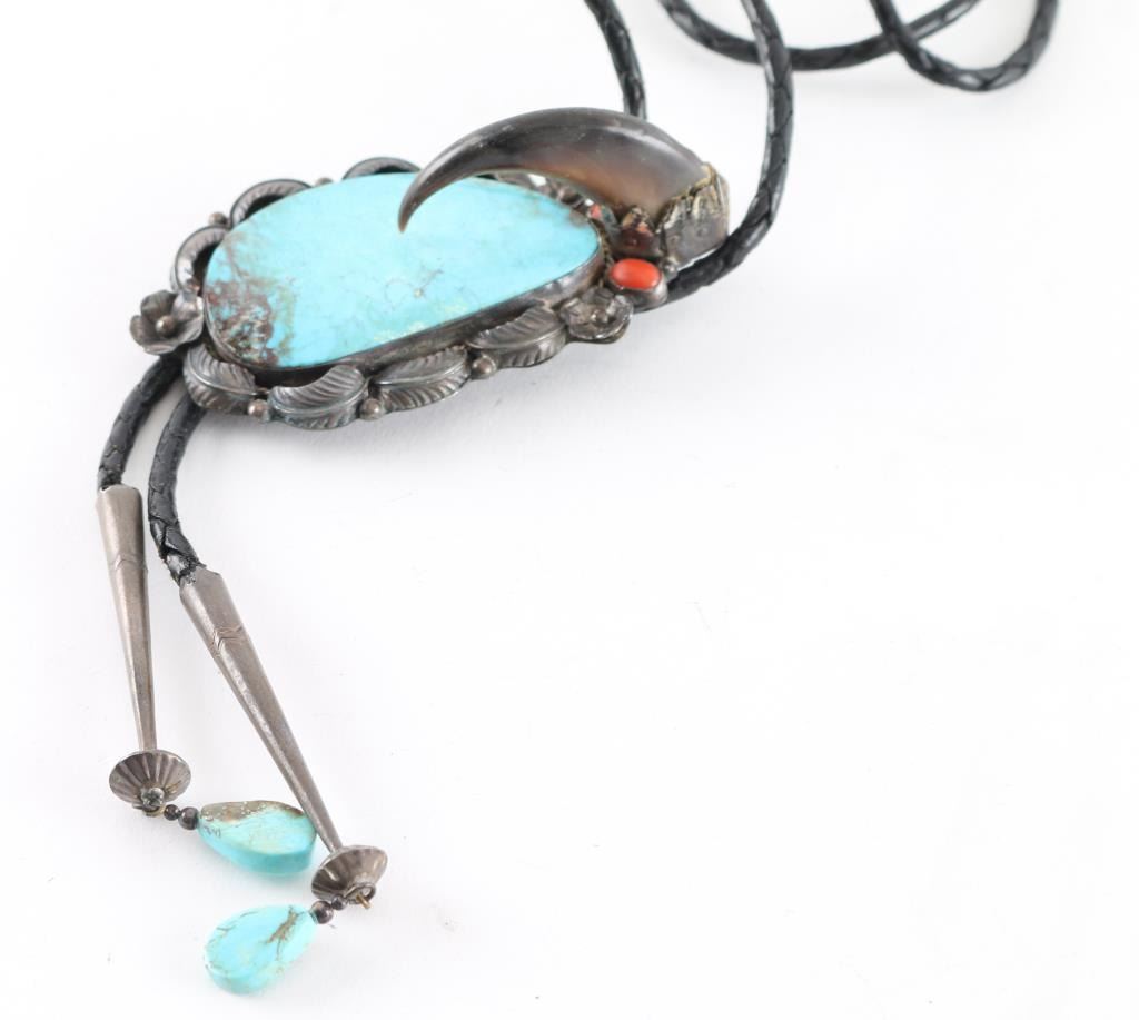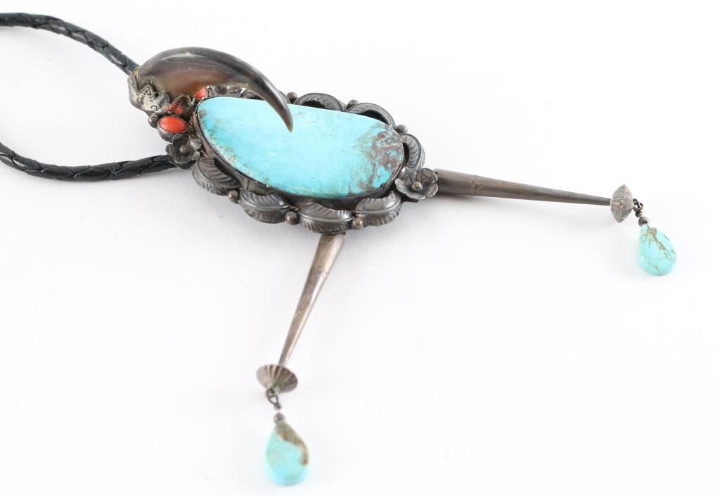 Lot 1091 Old Pawn Turquoise & Bear Claw Bolo