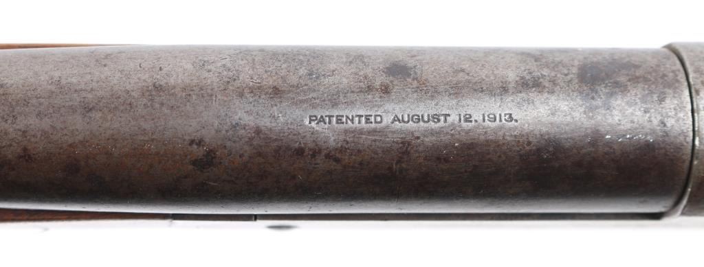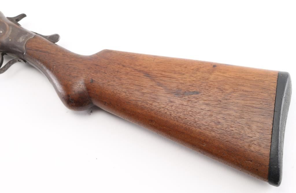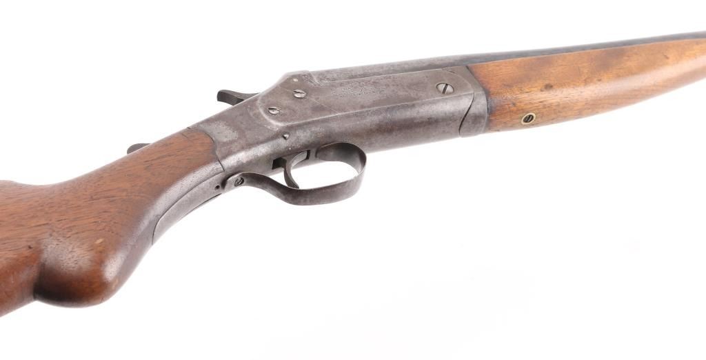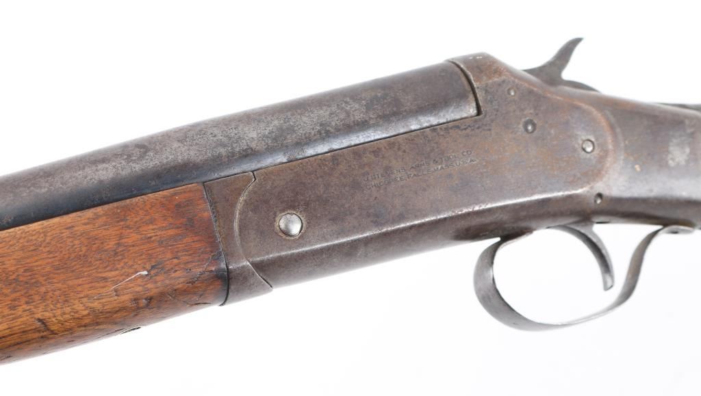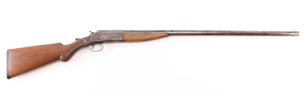 Exposed hammer single shot break-open shotgun chambered for 12 gauge shells, 32" barrel with 3" chamber, CYL Choke, automatic ejector, brass bead front sight, smooth trigger, serrated hammer spur, knurled top lever, smooth wood forend and semi-pistol grip shoulder stock stock with factory buttplate 12 3/4" LOP. Shotgun exhibits a molted brown/gray patina to the entire metal finish. Action is sound, the bore is very good, needs cleaning, the wood stocks are good/sound Condition. There is a small chip out of the buttplate. NRA Condition Fair to Good. C&R Firearm.